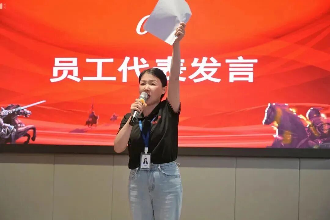 “我坚信,只要我们心往一处想,劲往一处使,拧成一股绳,搏尽一份力,就没有我们拿不下的订单,没有我们攻不克的堡垒!”“坚守品质,直冲目标!”“明天的我们一定会比今天更优秀!”员工代表的发言朴实而真挚,道出了全体员工的心声,也让大家看到了普通岗位上的奋斗力量——每一个人都是这场百团大战的“主角”,每一份努力都将汇聚成突破目标的强大合力。