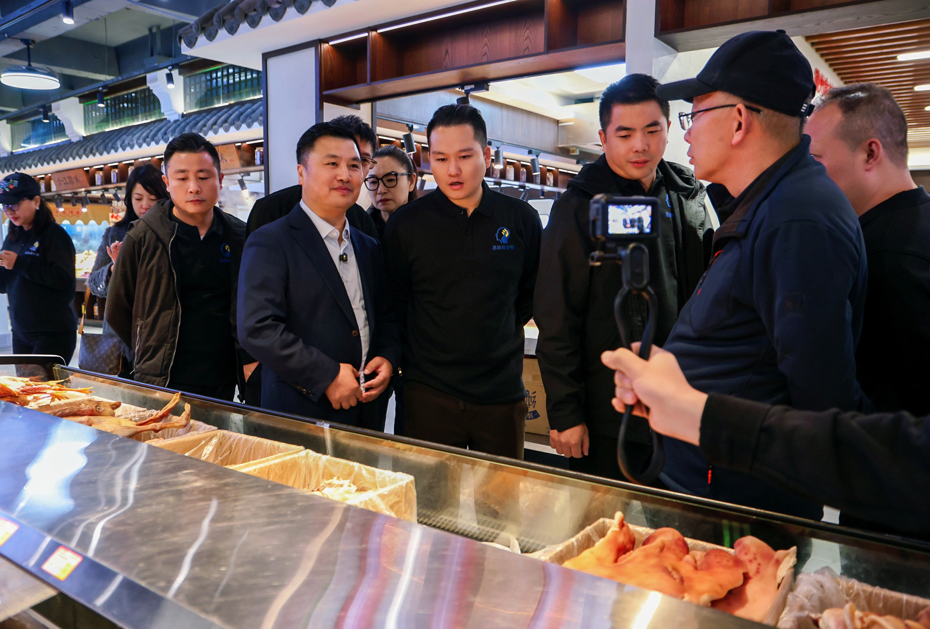 考察团一行首先深入全江腊味智能化生产基地,实地察看标准化生产车间。董事长江礼明和总经理胡国峰现场介绍核心产品的传统工艺传承,以及智能设备在品质管控、产能提升中的应用。随后走进全江腊味体验店,那香气扑鼻的腊肉、色泽诱人的腊肠,像是在列队欢迎远道而来的客人。