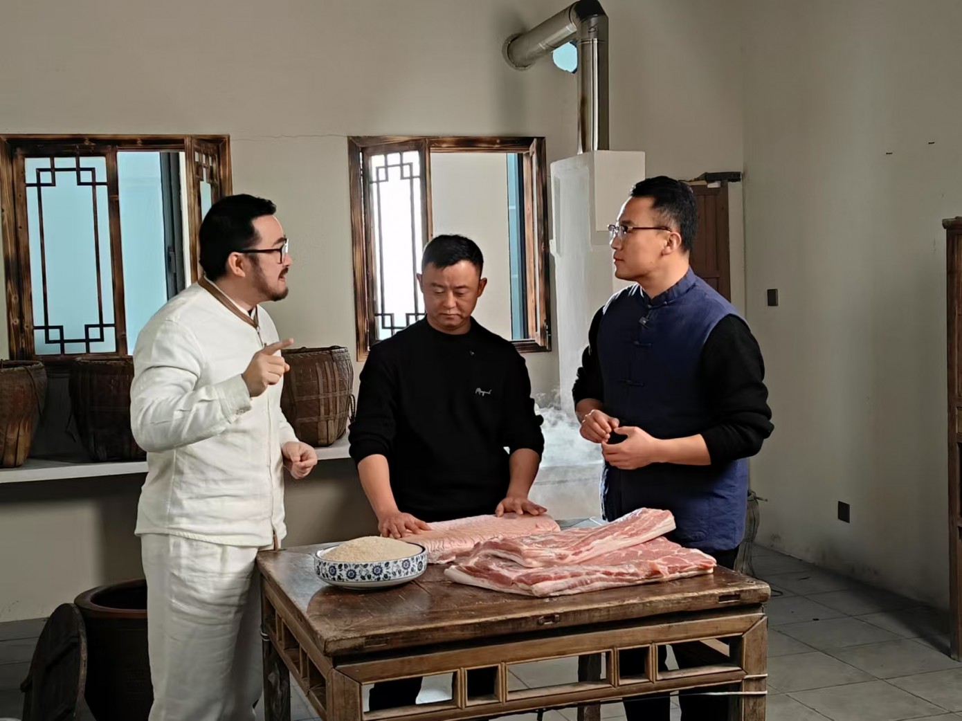 2024年12月河南卫视中国有好菜栏目摄制组来公司拍摄腊味的制作