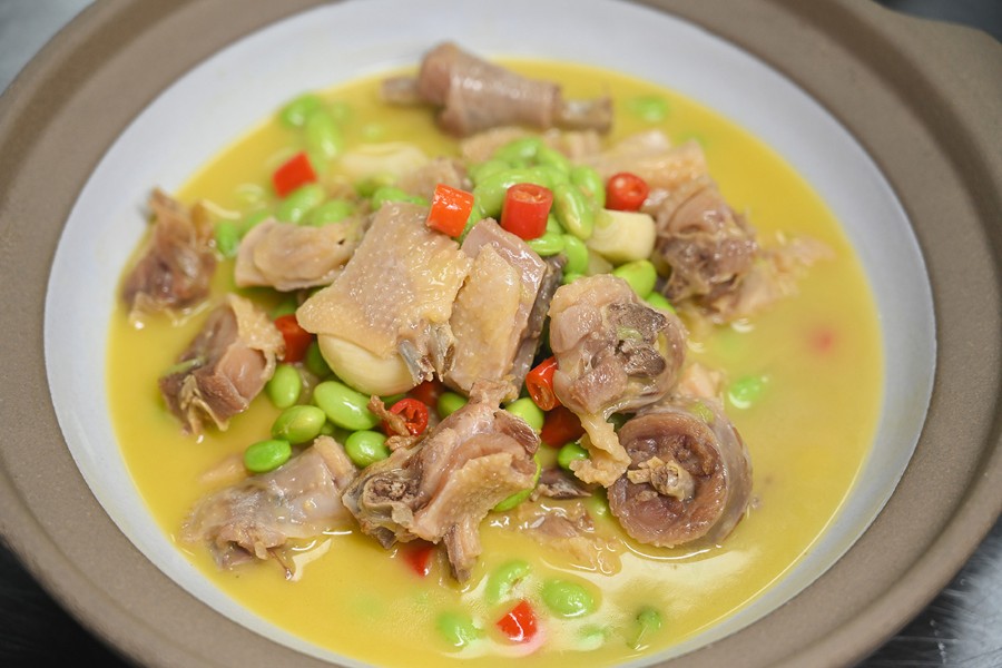风干老鸡烧毛豆