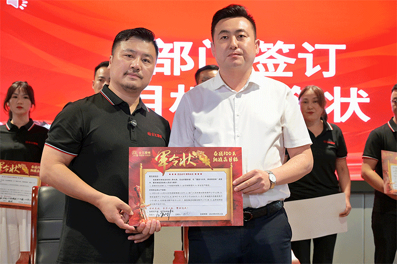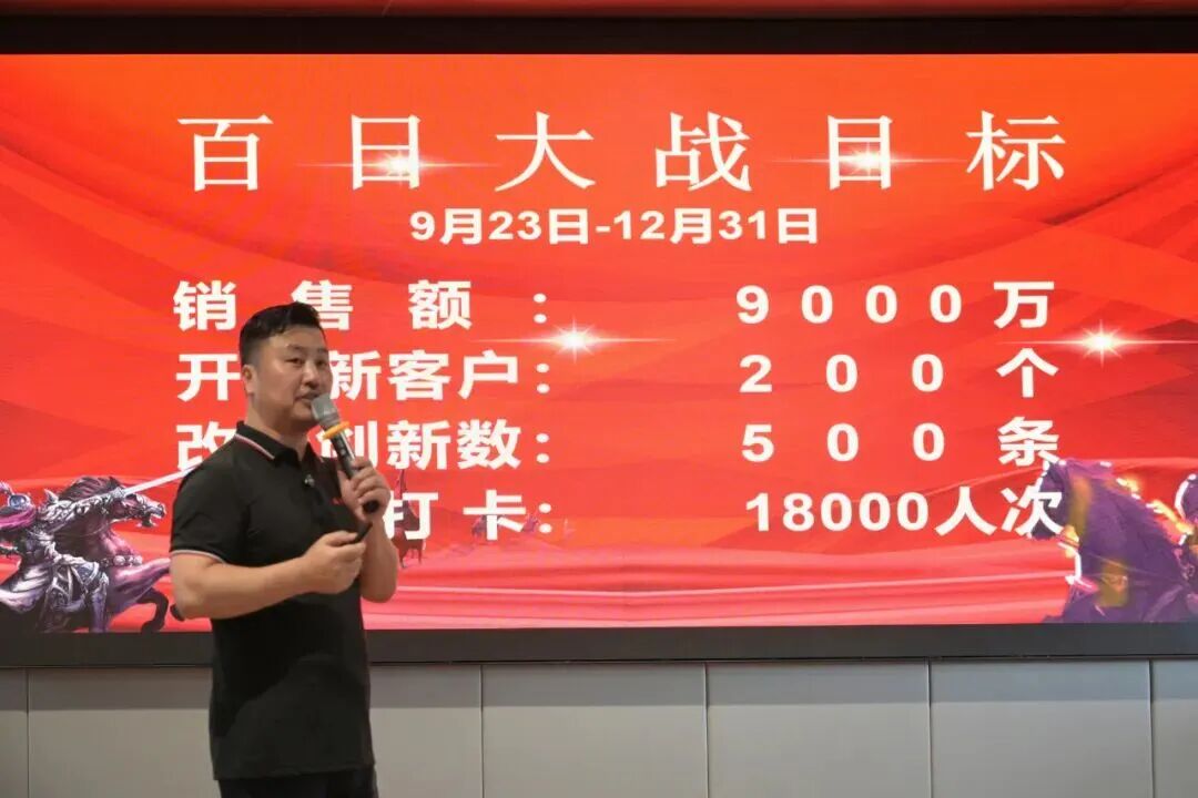 随后,董事长江礼明正式发布百日大战目标:实现销售额突破9000万元、开发新客户达200个,改善创新数500条、读书打卡18000人次!