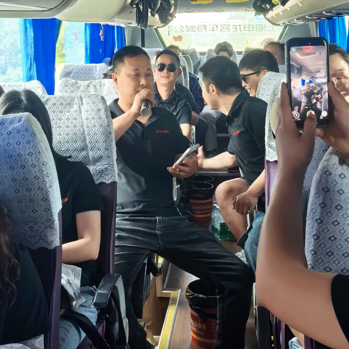 出发的大巴车上,热闹非凡,宛如一个移动的欢乐派对。