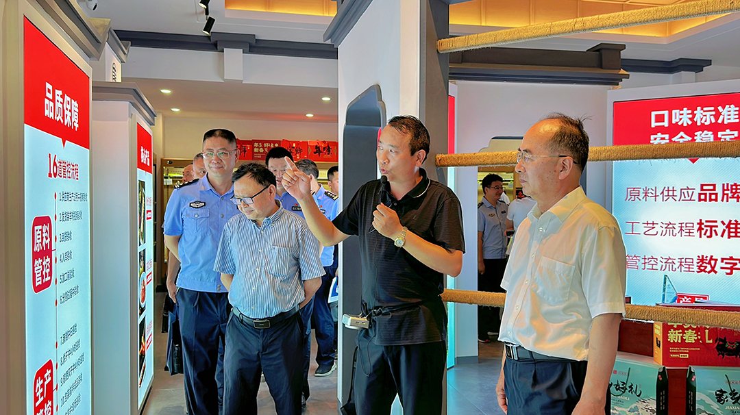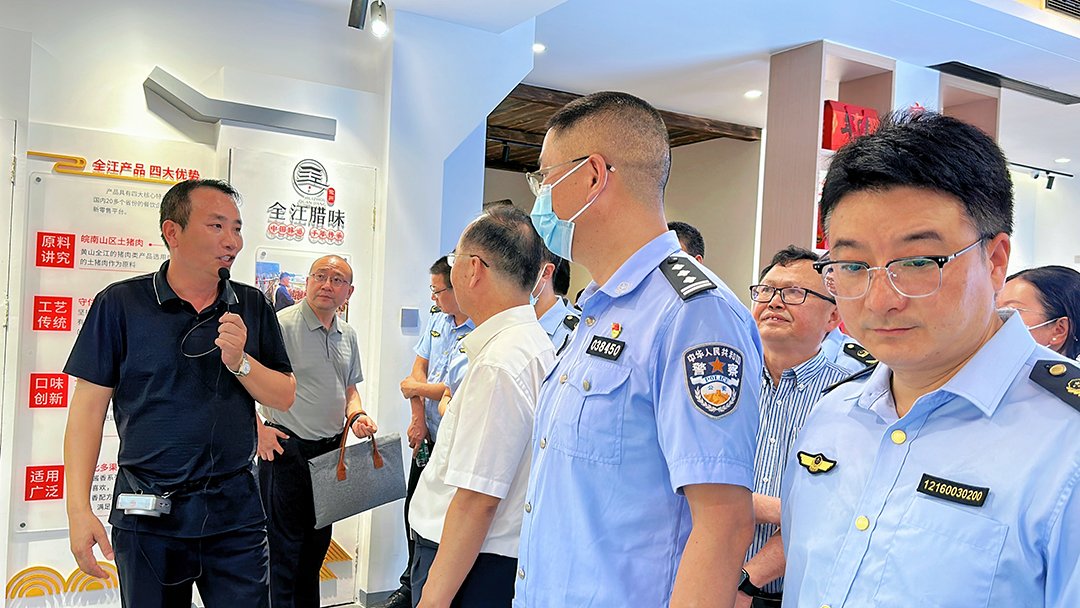 7月9日上午,黄山市黄山区食品安全委员会办公室、黄山市公安局黄山分局、黄山市黄山区农业农村水利局、市场监督管理局领导一行莅临我司进行检查指导工作,全江腊味总经理胡国峰、品管部经理包琦栋及相关负责人陪同。