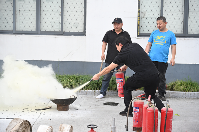 在这次培训中,来自机修部门的周师傅向在场的所有员工详细地讲解了使用灭火器的精确步骤,并亲自进行了操作演示:首先,他示范了如何正确提起灭火器;其次,展示了如何拔除保险销;然后是紧握喷嘴前端,准确对准火源底部;最后,强调了需用力按压喷射阀的动作要领,随后,他还向大家演示了消防栓的正确使用方法,并指导参加培训的人员亲自实践操作灭火器和消防栓。