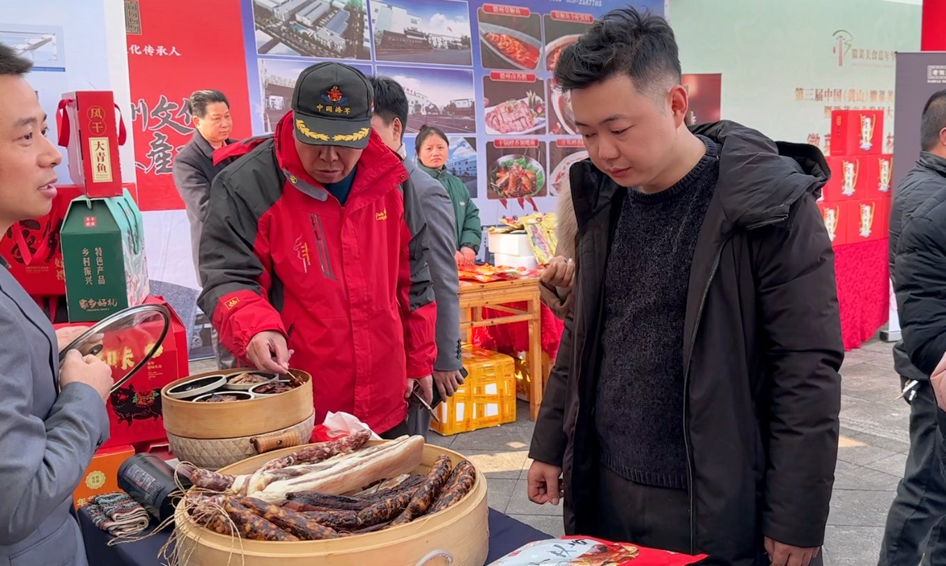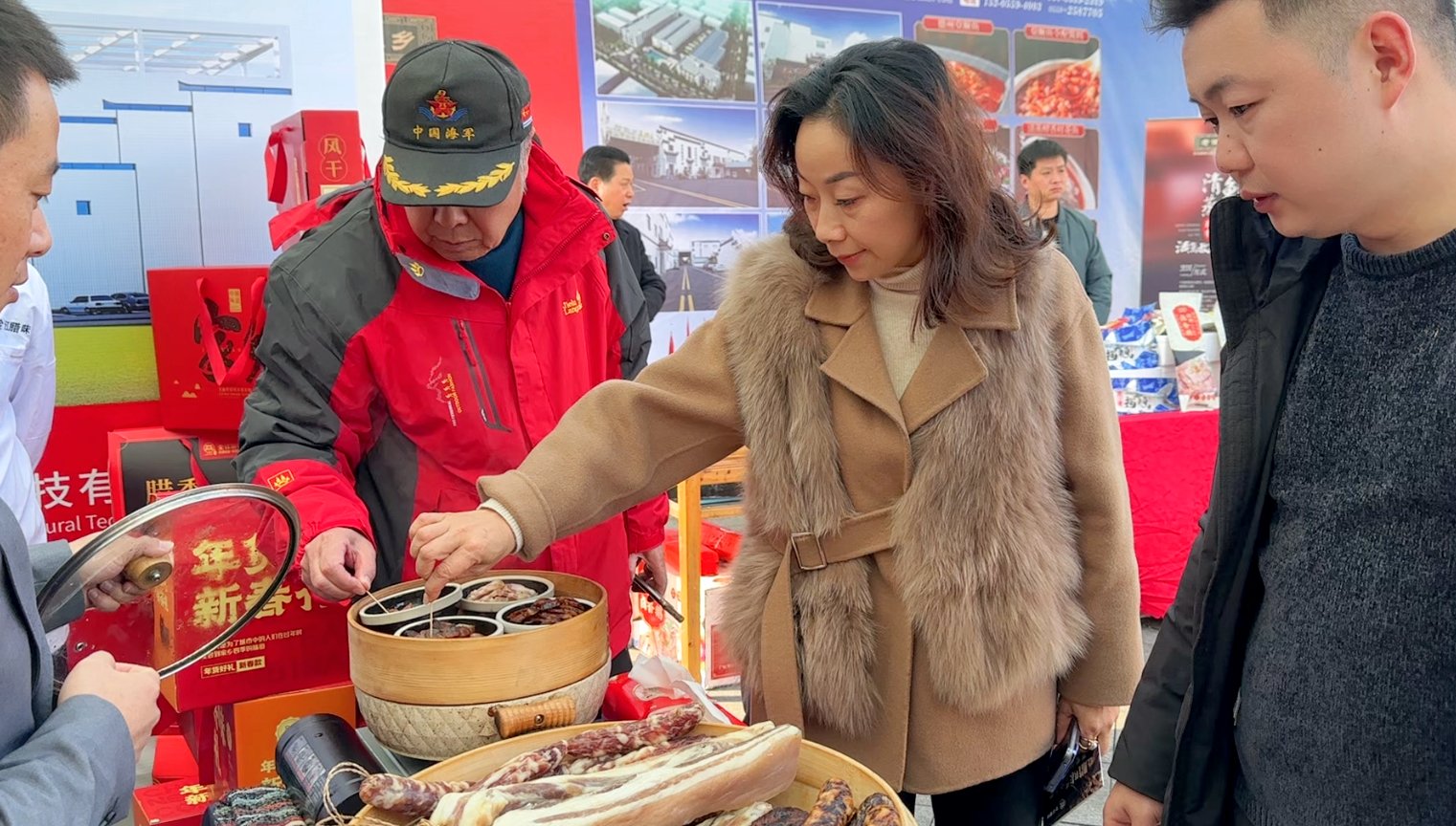 本次展会现场,全江腊味以其独特的展示方式和丰富的口感体验,吸引了众多参会者的目光。展区现场,人头攒动,全江腊味的展位前更是排起了长龙。参会者们纷纷品尝腊味美食,对其赞不绝口。全江腊味以其独特的风味,再次证明了徽菜的魅力。
