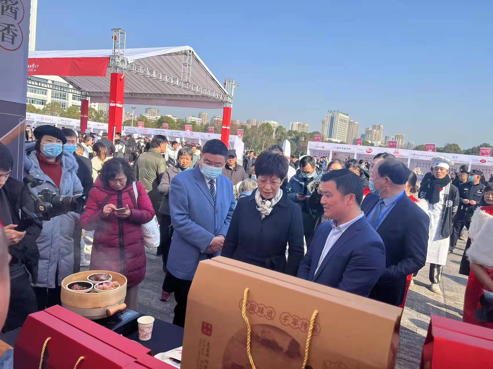 黄山市徽菜产业食材展同期在黄山市屯溪区世纪广场举行,市委书记凌云陪同中国烹饪协会会长傅龙成等领导嘉宾视察全江腊味食材展区,对全江腊味的系列产品做出充分的肯定和表扬,希望全江腊味继续传承徽州传统腊味制作技艺,将徽州腊味发扬光大,带领徽州腌腊制品行业走向全国,走向世界。