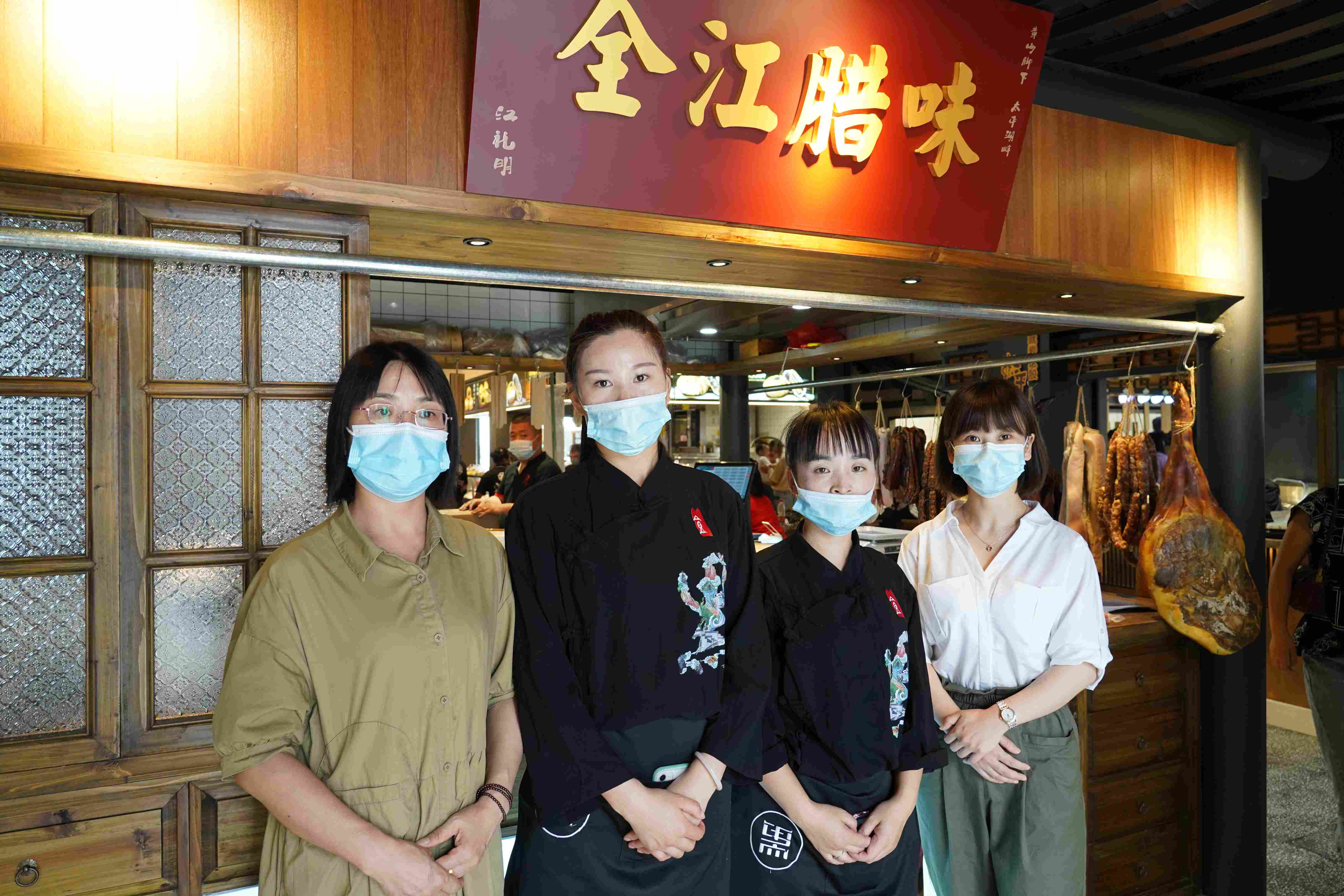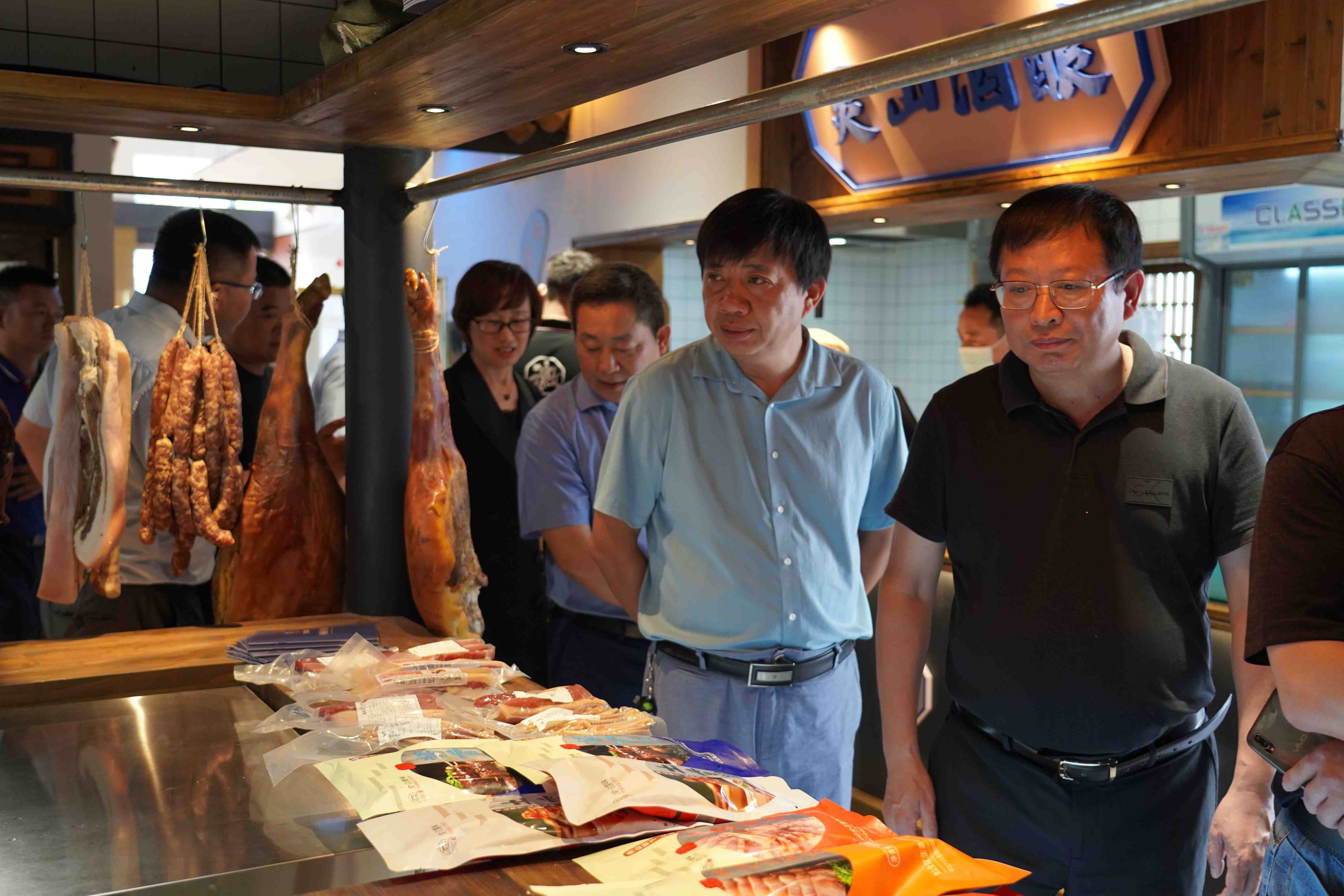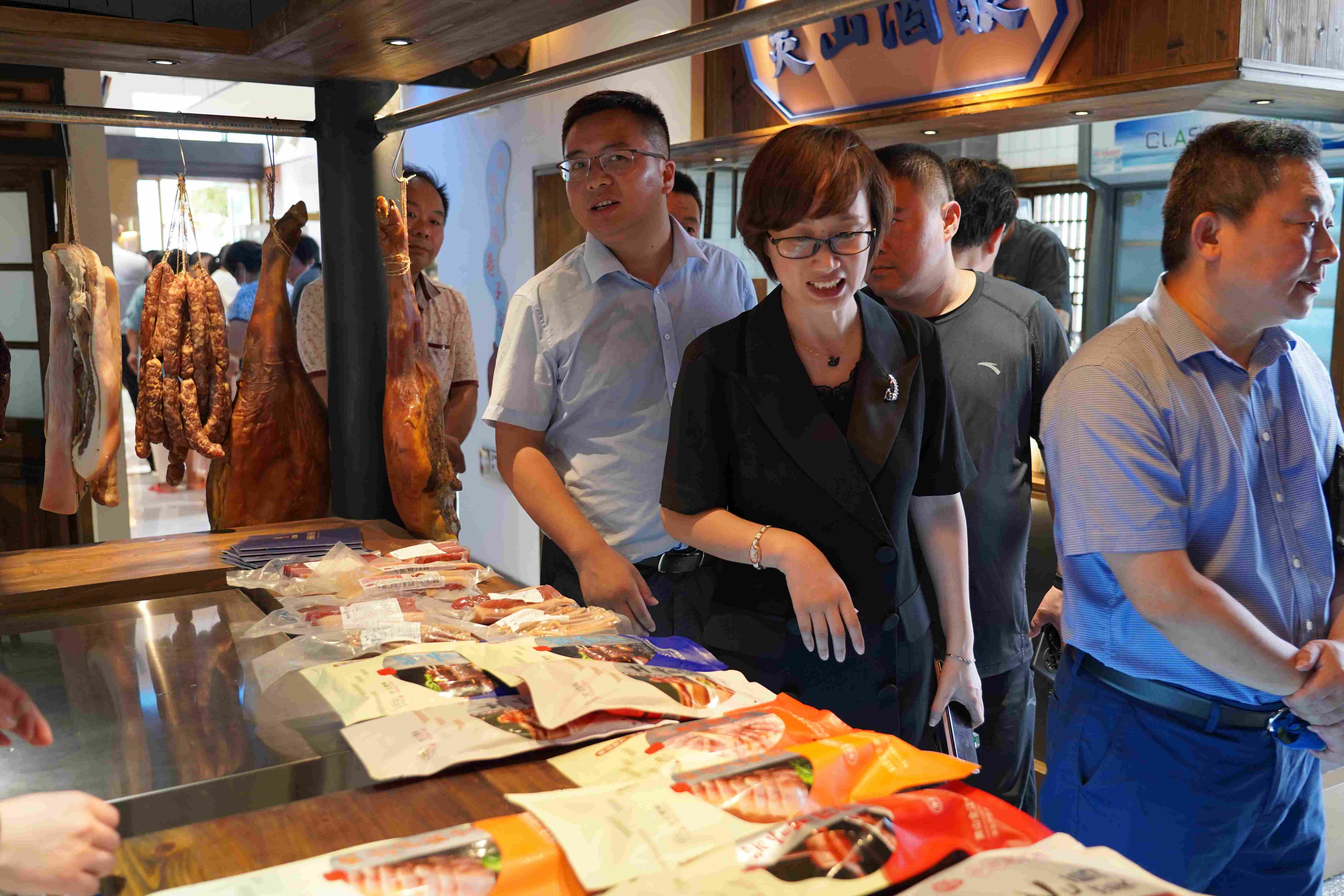 黟县县委副书记朱永胜,黟县县政府副县长刘菁兰,黟县文旅体局副局长吴能英等一行出席了此次开业活动。(上图为正在参观全江腊味体验中心)