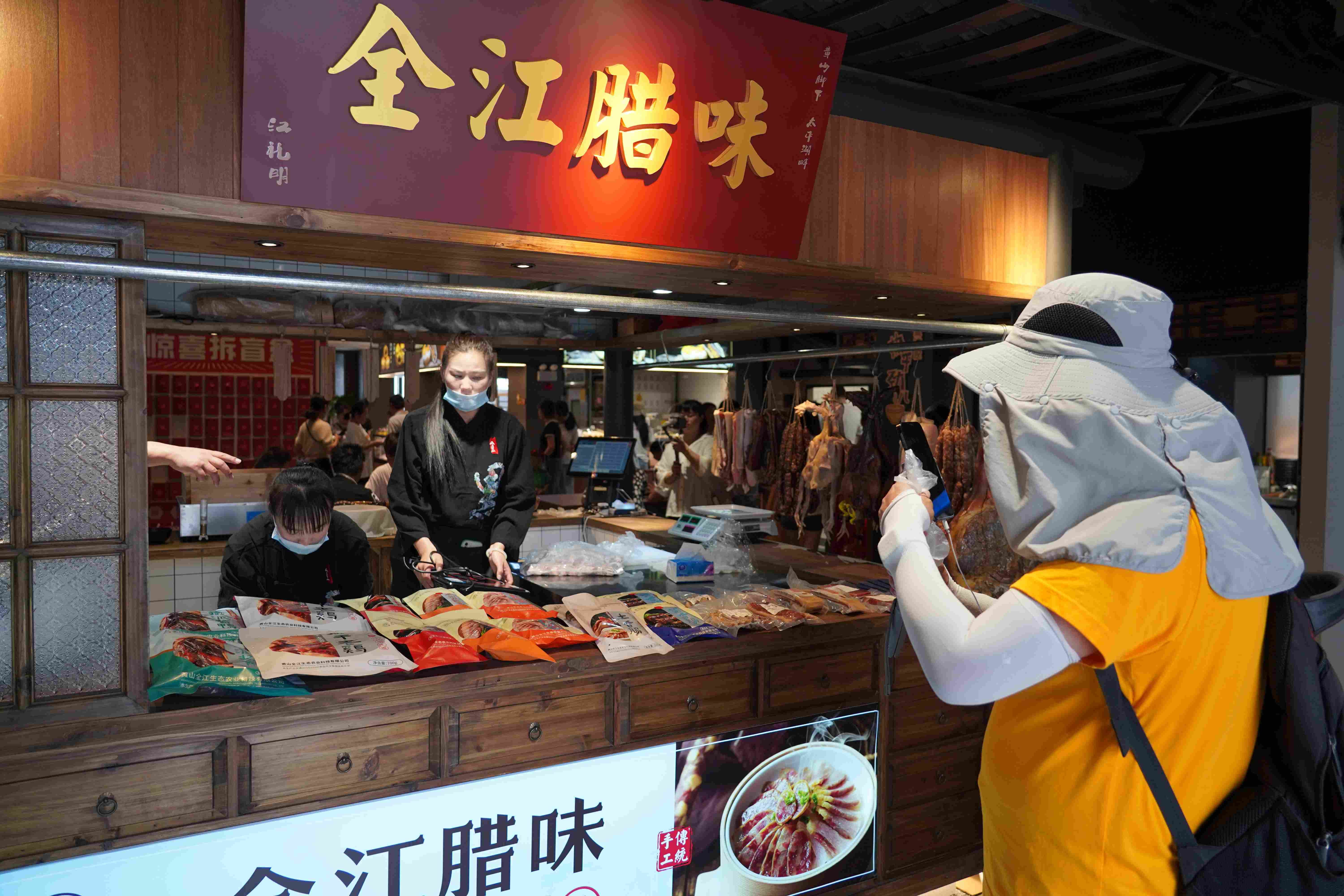 全江腊味产品体验中心,为国内游客精心准备了:徽州腊味饭、腊味狮子头、清蒸农家土香肠、酱香黑猪蹄、酱鸭脖等徽州特色腊味小吃,腊香弥漫,油香绕梁,整个铺子仿佛就像是沉甸甸的岁月陈香。