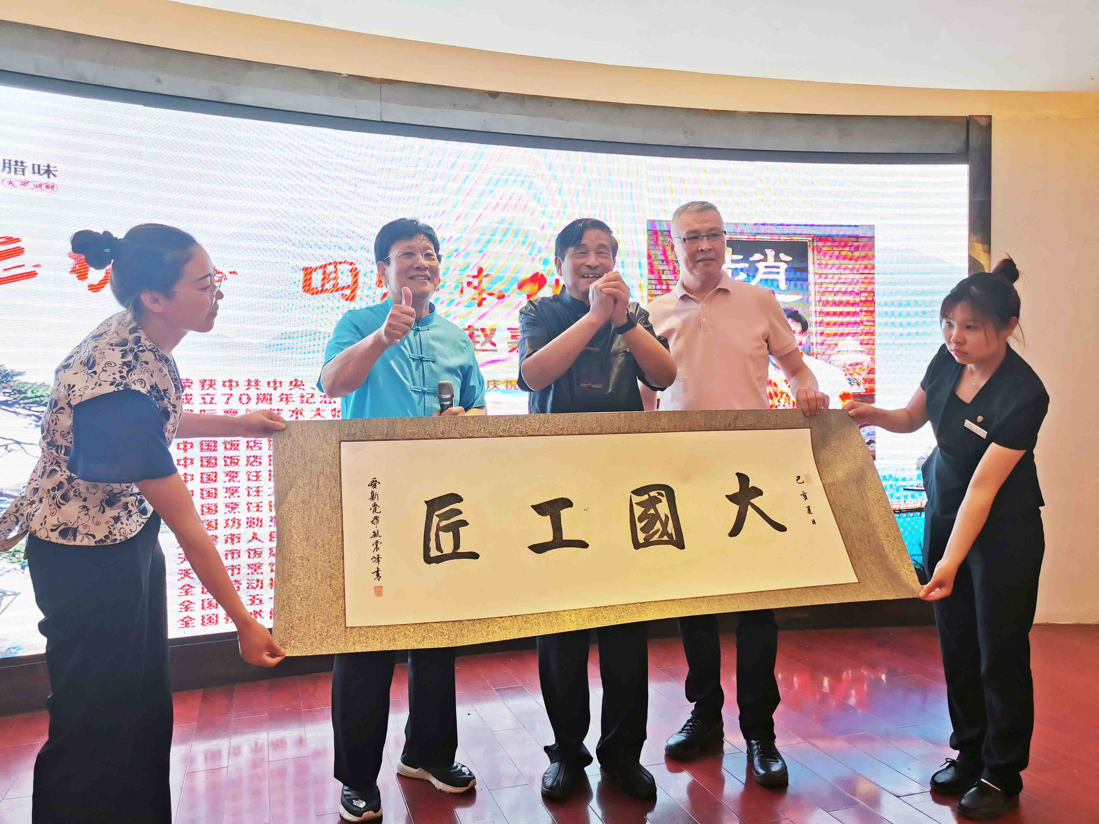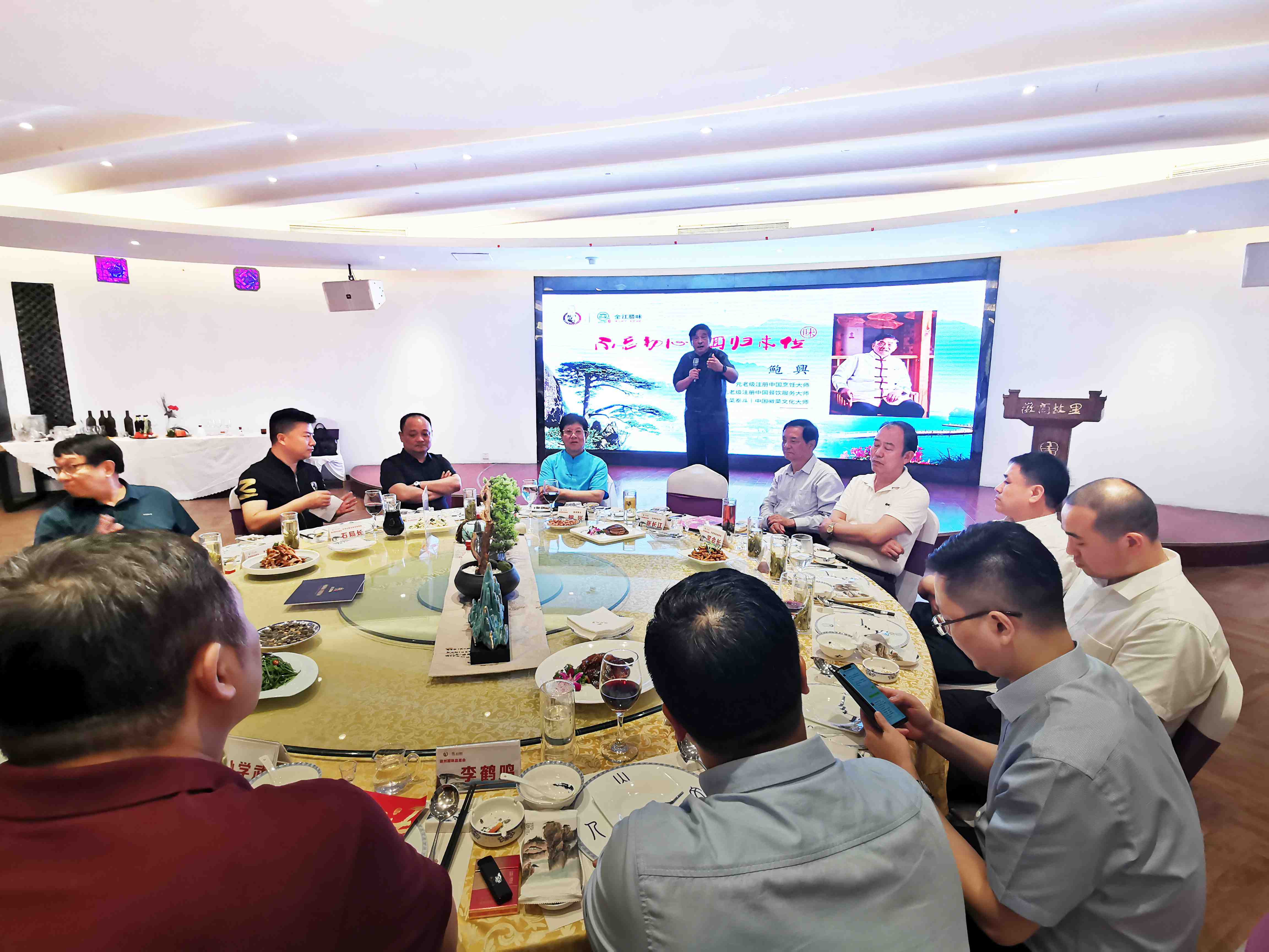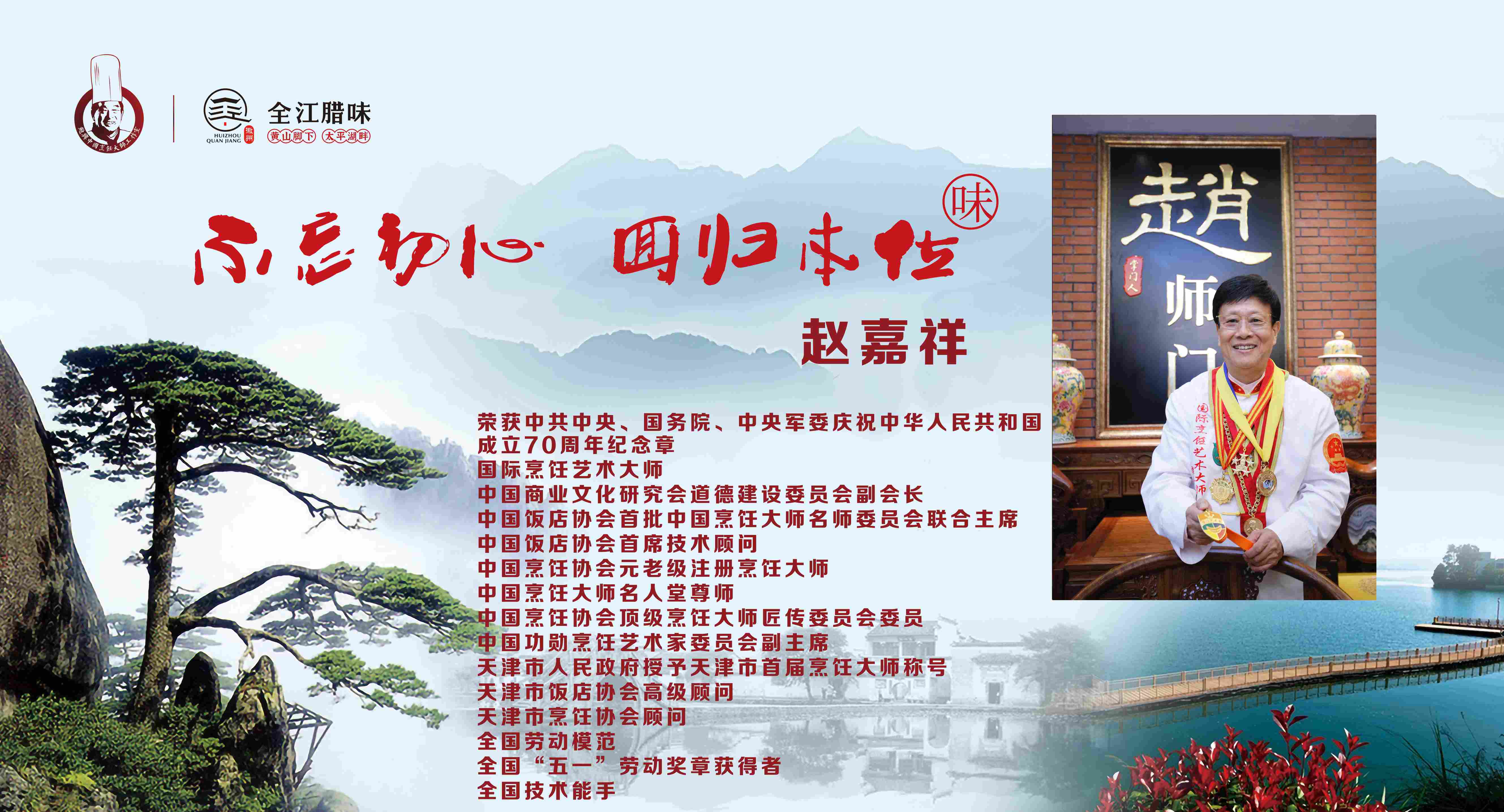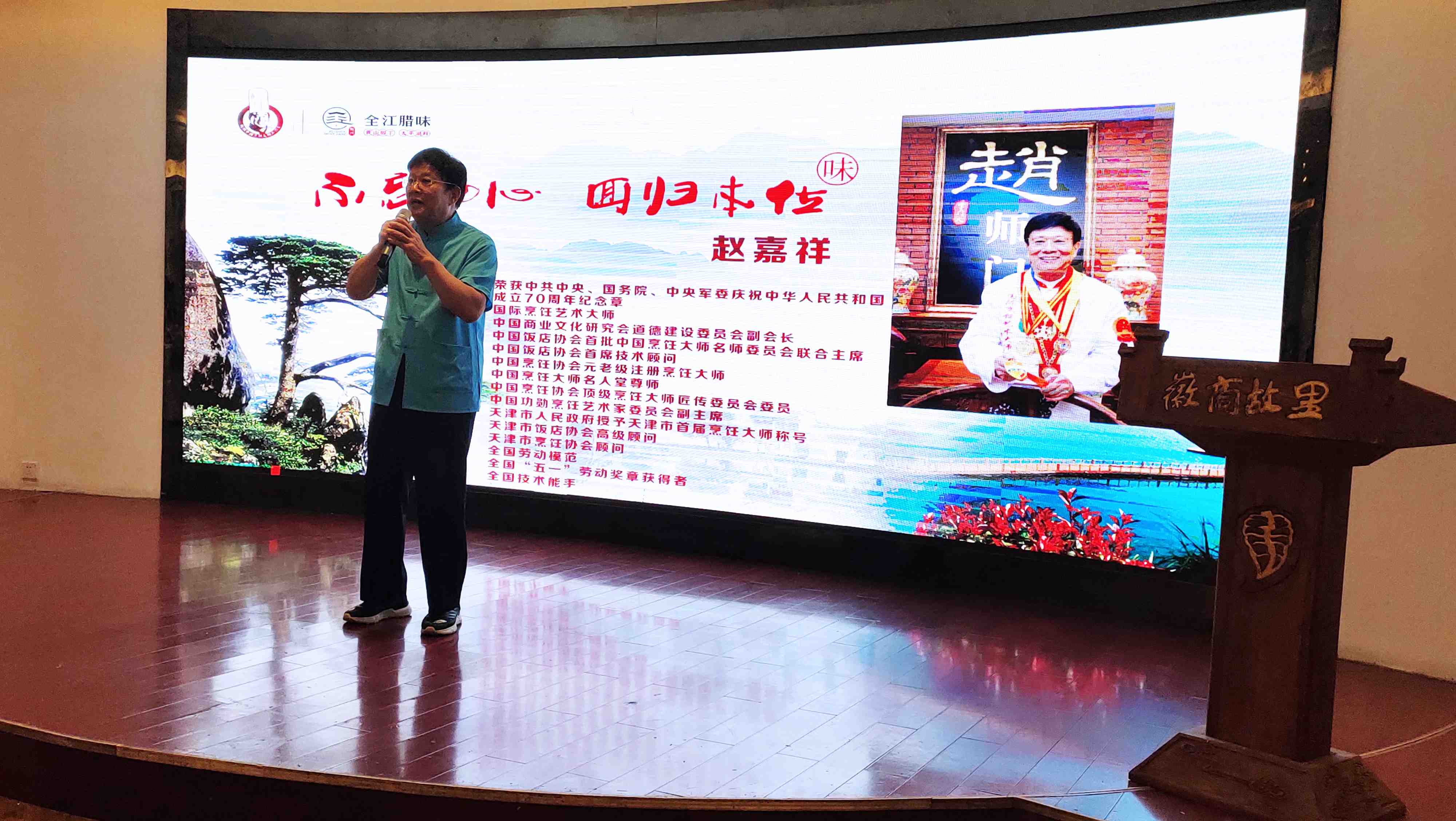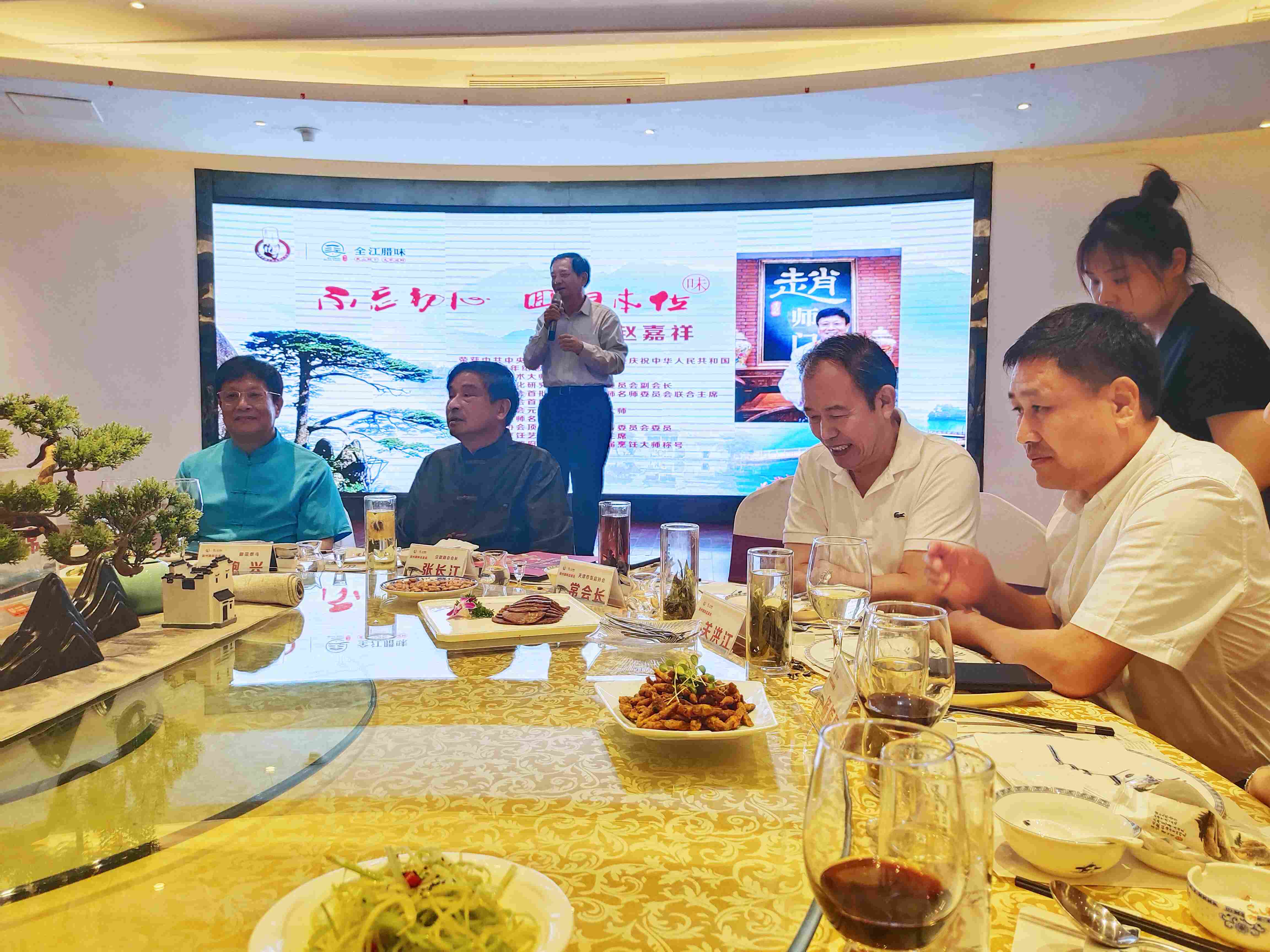 徽州腊味天津品鉴会的举办,全程的筹划和推进得到了津菜泰斗、元老级注册烹饪大师 赵嘉祥大师和赵师门同仁的全力支持,赵嘉祥大师在品鉴晚宴上用一首改编的黄梅戏开场致以精彩的致辞,阐述了天津和安徽的文化渊源,追溯至明成祖朱棣迁都北京和清李鸿章在天津时期等主要历史时期,徽菜对津菜的影响和融合。对晚宴上全江腊味的传统腊味产品给予很高的评价,他说“业内精英齐赏材、各个点赞徽食材”,尤其是刀板香、酱香黑猪肉和农家土香肠,赵嘉祥大师认为完全可以借鉴徽菜的“以味调味、原汁原味”的烹饪特点,将这些食材和天津菜充分创新和融合,带给天津餐饮业新的菜品呈现形态。赵嘉祥大师,希望徽津两地多加强交流、互动,多进行厨艺和食材的研讨,并表示将计划率天津餐饮界同仁莅临黄山进行徽文化考察和食材采风调研。
