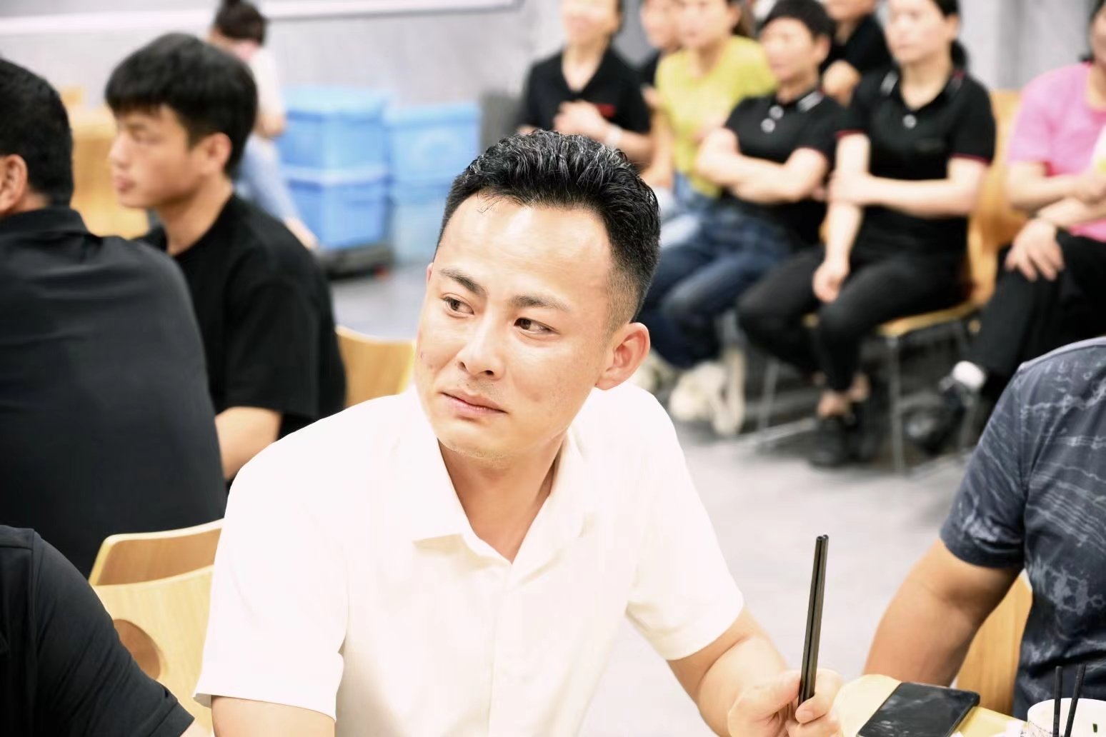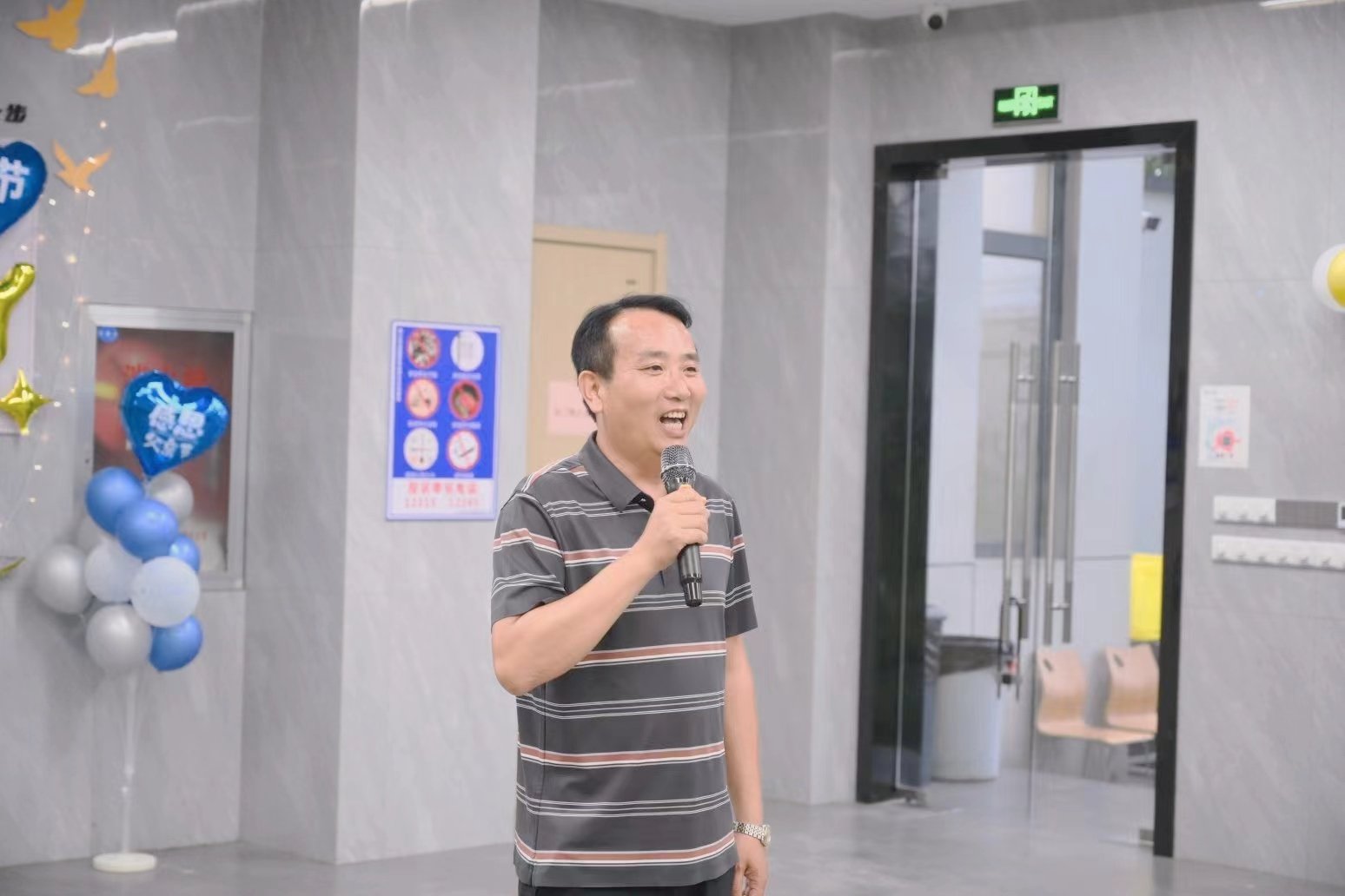在晚上的活动开始前,行政部门和后勤部所有小伙伴,提前来到一楼食堂布置现场、摆放餐桌,节目彩排,希望给全江的爸爸们一个最大的惊喜!
