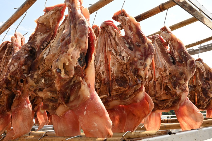 晾晒腊猪头