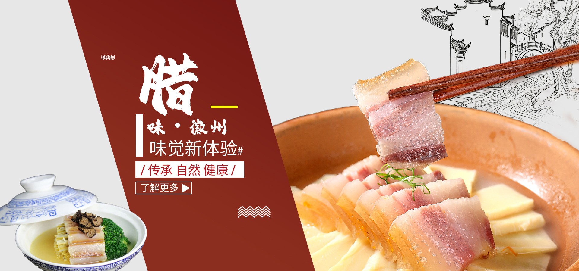 中国味道、千年传承,十年匠心、守住腊味道——徽州刀板香、火腿、腊猪蹄/猪脸/猪头/猪排骨、风干五花肉、臻品黑猪腊肉等