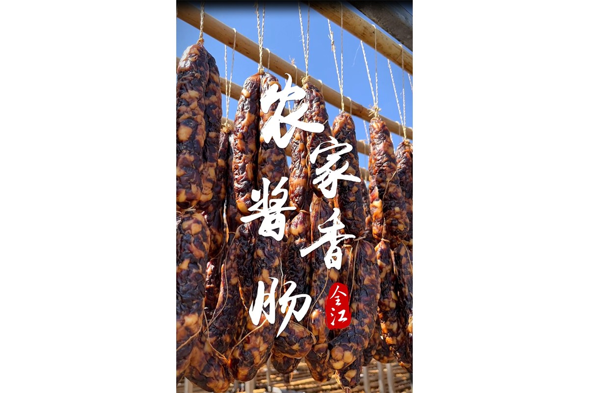 快来看看这是我们刚刚晾晒好的土香肠