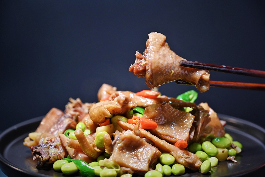 风干老鸡烧毛豆
