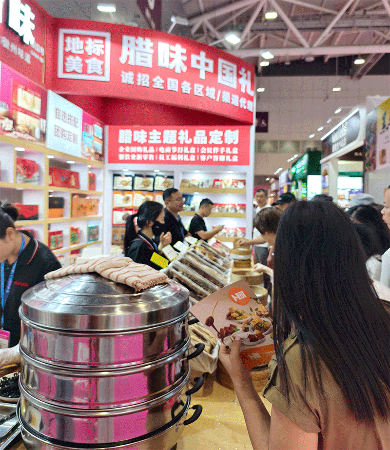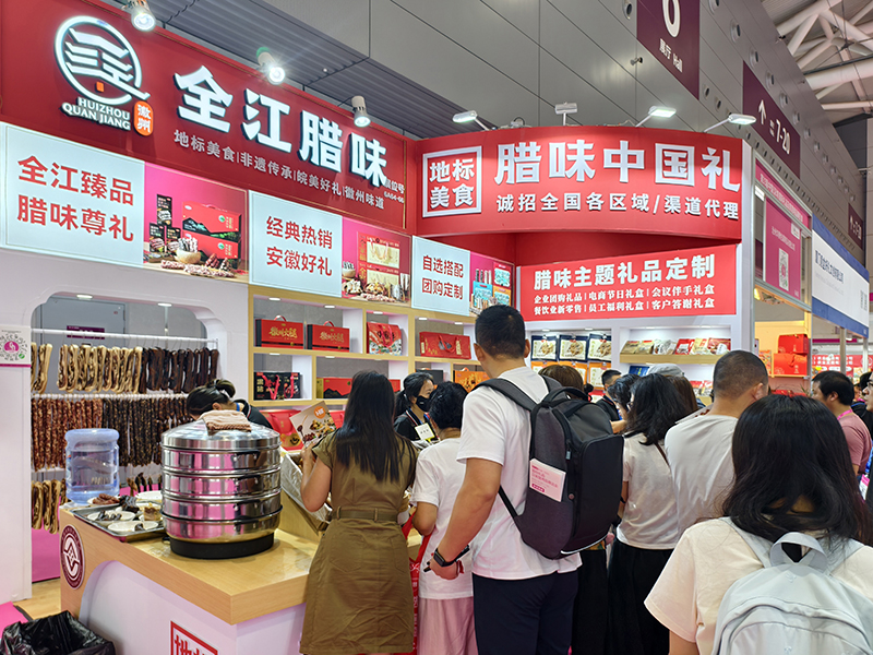 展会期间,全江腊味凭借徽州特色腊香风味与创新礼盒设计,成为食品展区的一大亮点,现场试吃区人气火爆,有采购商当场敲定合作意向,也有消费者询问线上购买渠道,希望把这份传统老味道带回家。