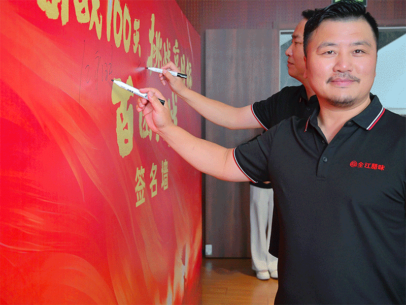 为确保目标落地,营销中心、仓储物流部、行政人事中心、生产部等十大部门负责人及全江餐饮体验店、商贸公司负责人依次登台,签署《军令状》并带领团队宣誓。营销总监翟蓓的誓言掷地有声:“9月23日-12月31日完成销售额9000万;老客户回访120个;举办品鉴会20场……”品管研发部代表则承诺:“部门降本金额50万;部门读书打卡800人次;部门的客户满意好评100条;品质保障宣讲100次……”