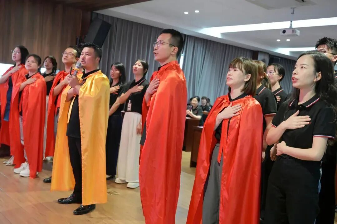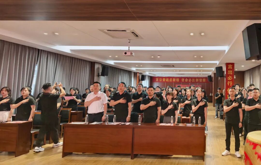 最后,在主持人的带领下,全体员工起立,右手抚心,共同宣读百团大战誓词:“我将全力以赴,不畏艰难,不惧挑战,勇往直前。我将用我的勇气和毅力,与团队一起拼博在奋战的最前线。无论遇到多大的阻力,我都将坚持到底,无论遇到多大的困难,我都将不屈不挠……”誓言声震礼堂,展现了团队“敢打硬仗、能打胜仗”的决心,也为本次启动会画上了圆满的句号。