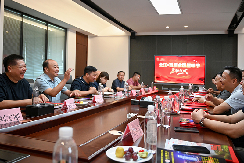 参观结束后,考察团一行移步来到会议室,与全江腊味董事长江礼明、黄山市餐饮烹饪行业协会常务副会长张根东围坐在一起,就本次腊味节的活动细节展开了深入而热烈的交流和探讨。