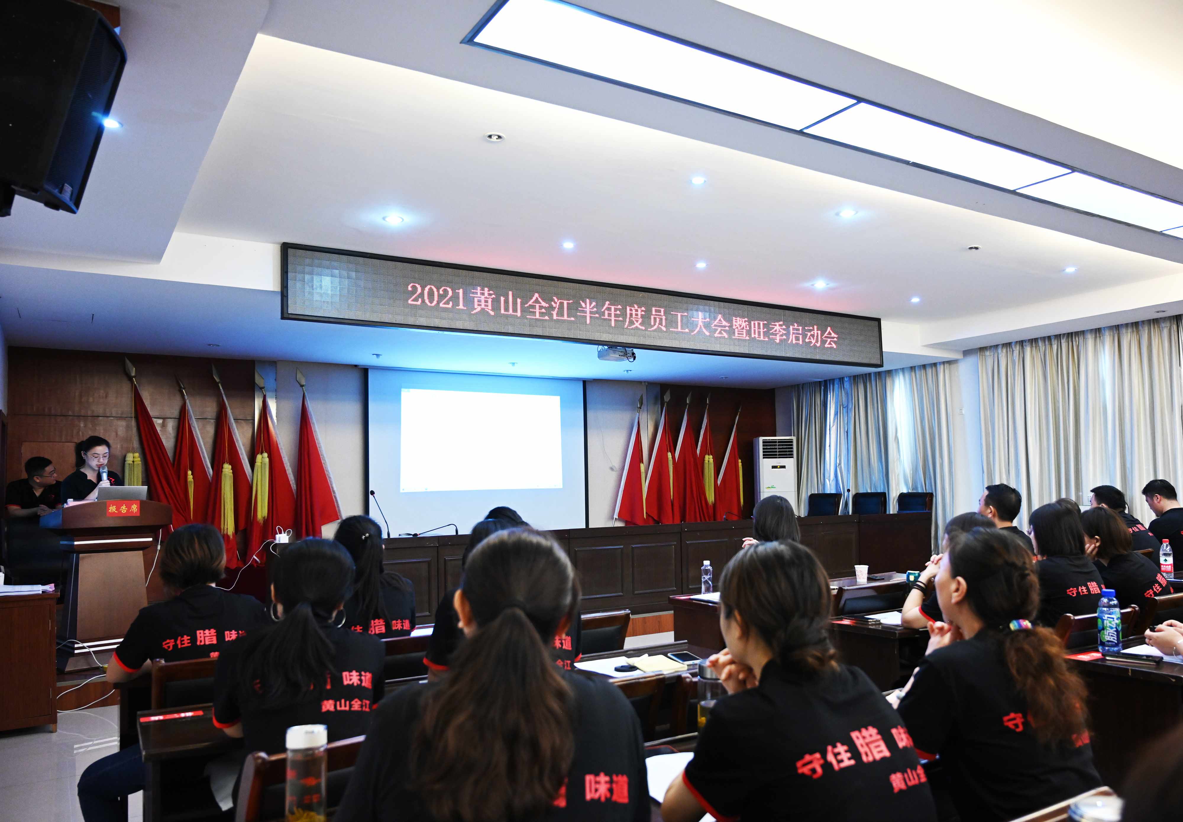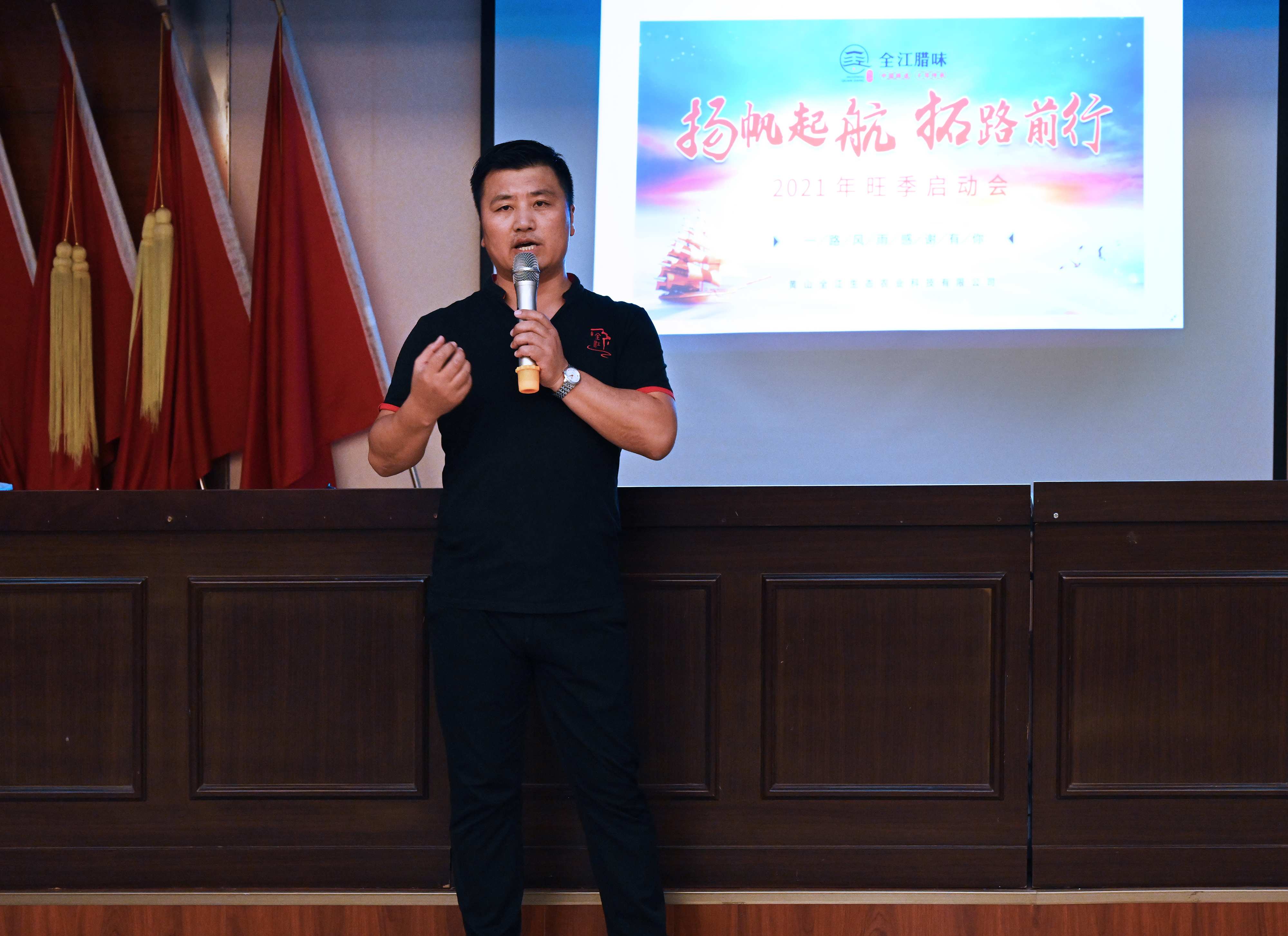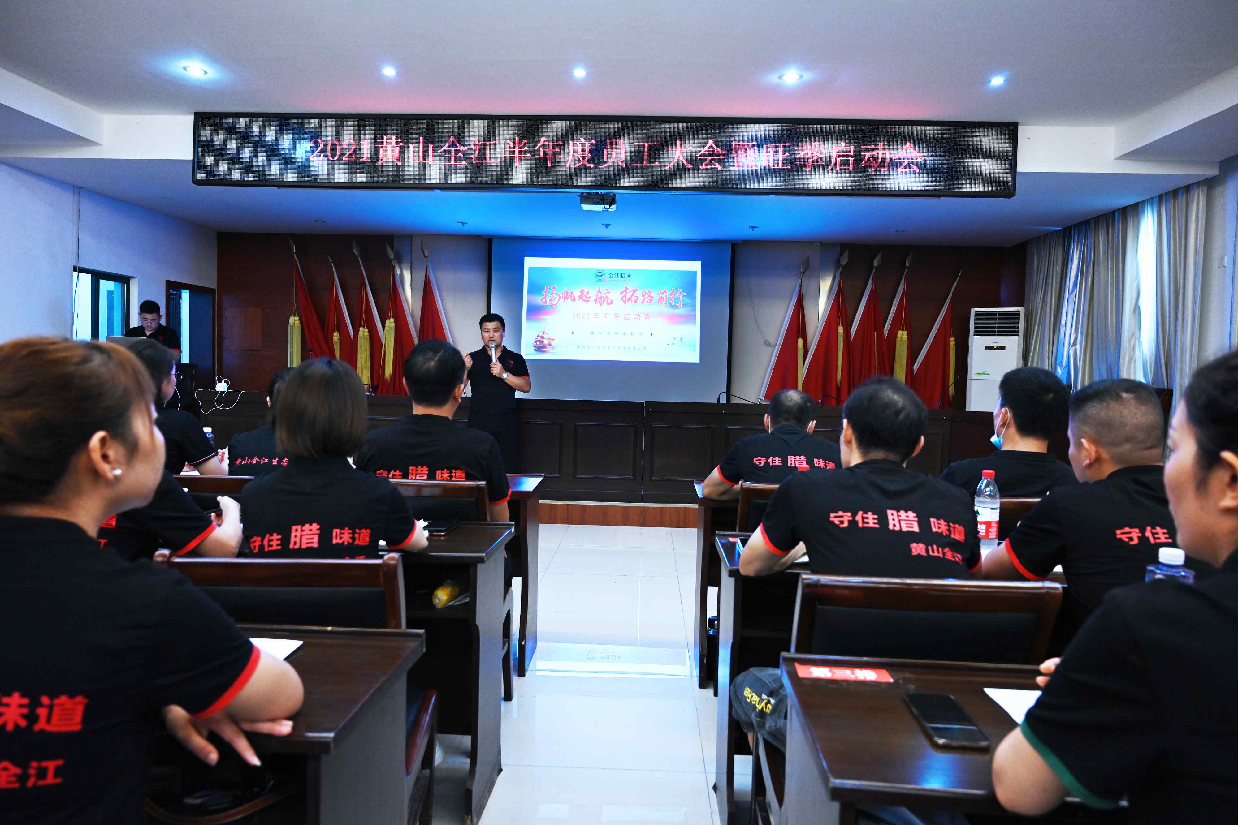 临近年底,腊味的旺季已经闪亮登场,愈演愈烈的腊味产品供求大战拉开序幕。2021年9月20日下午,黄山全江所有领导及员工开展了一场蓄力充电的“2021旺季启动会”,为即将到来的旺季服务吹响奋战的号角。