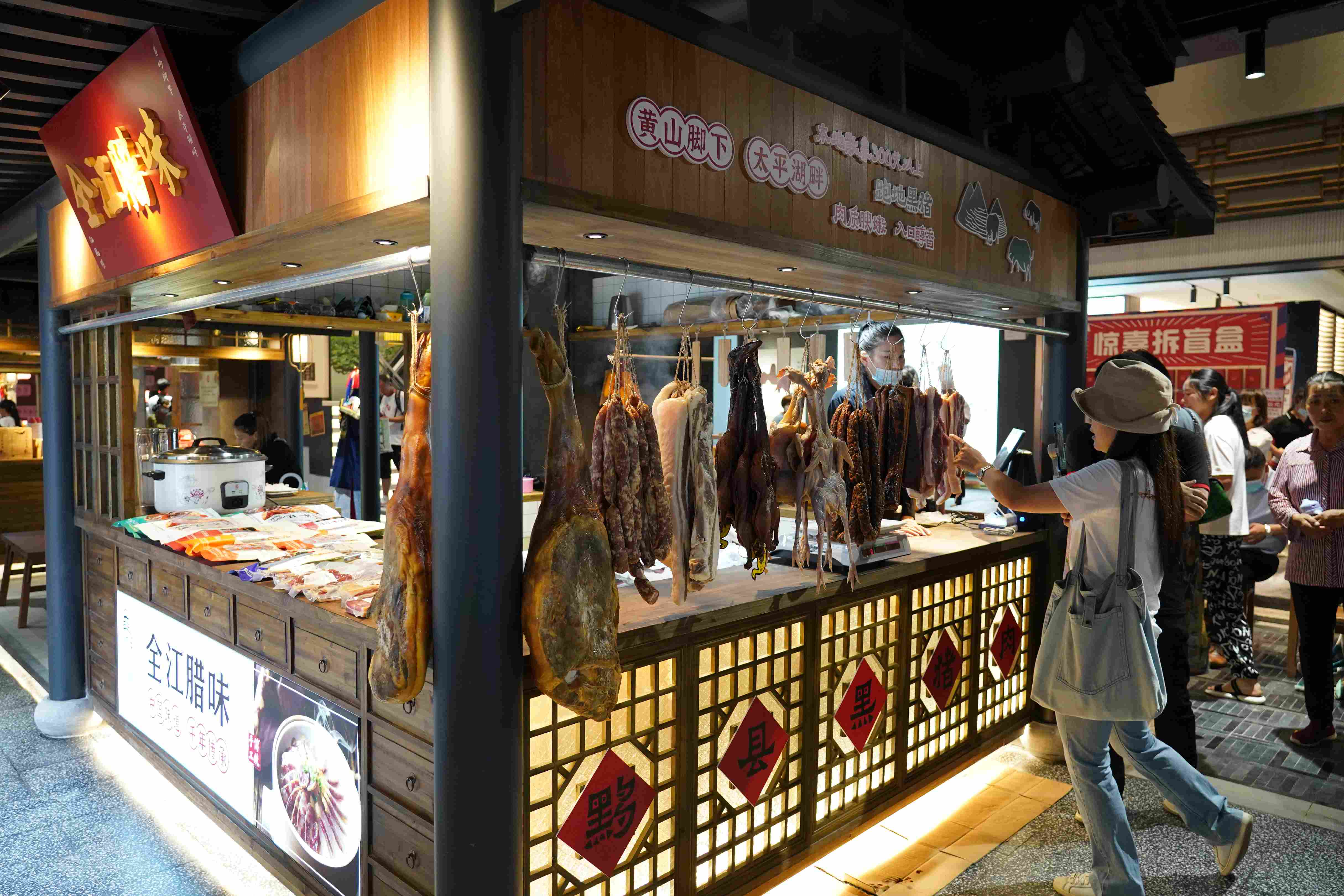 全江腊味产品体验中心,为国内游客精心准备了:徽州腊味饭、腊味狮子头、清蒸农家土香肠、酱香黑猪蹄、酱鸭脖等徽州特色腊味小吃,腊香弥漫,油香绕梁,整个铺子仿佛就像是沉甸甸的岁月陈香。