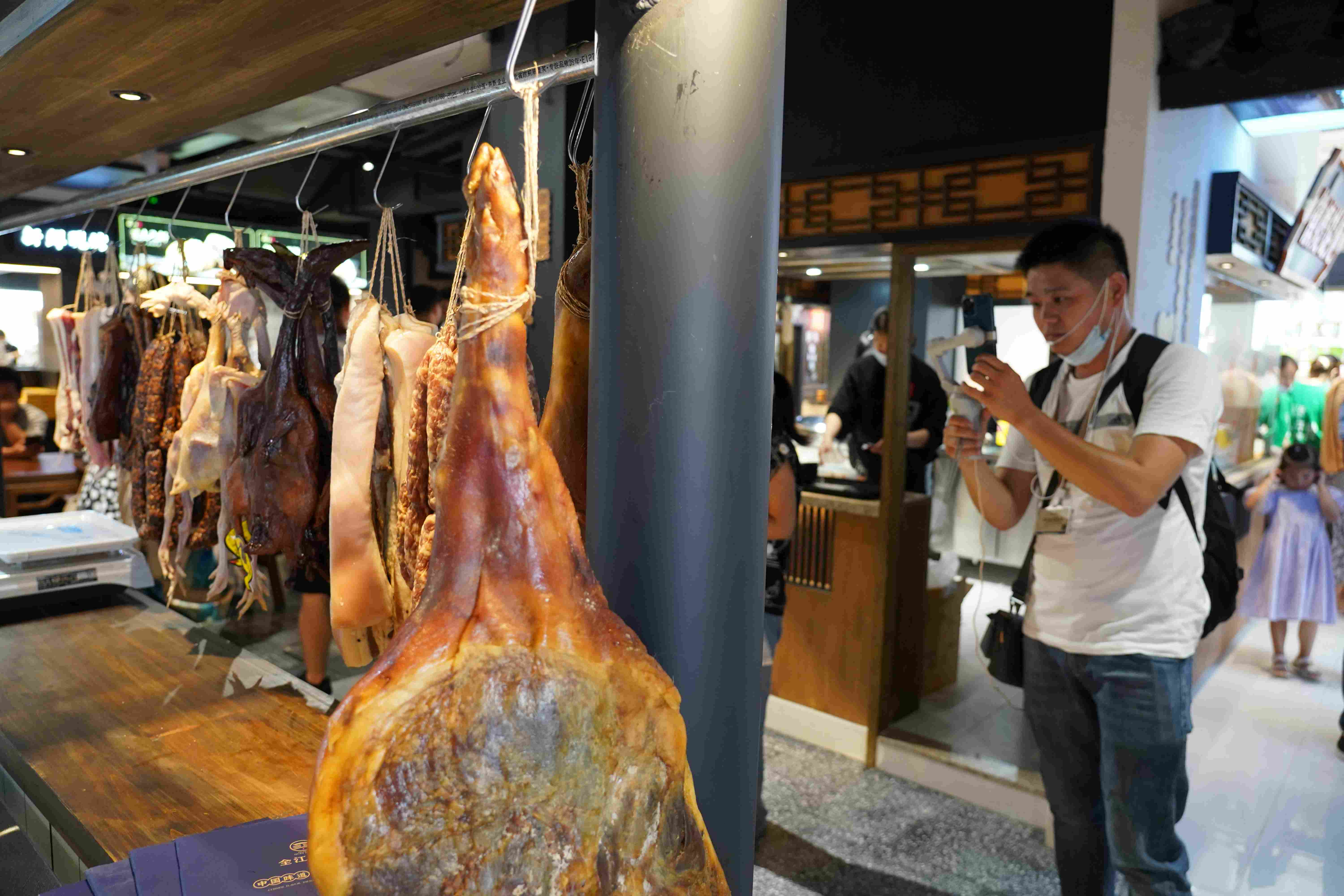 国内各地游客和市民对徽州传统腊味表现出极大的热情和喜爱,纷纷围观,有的试吃尝鲜,有的采购徽州腊味伴手礼满载而归。