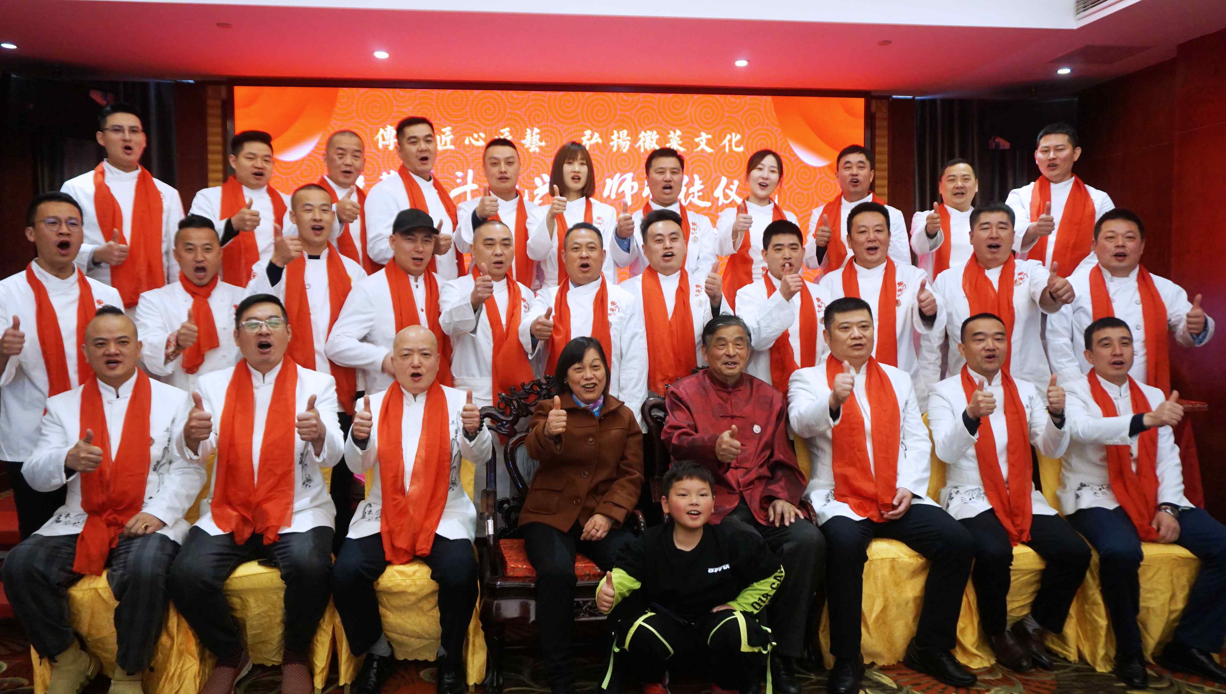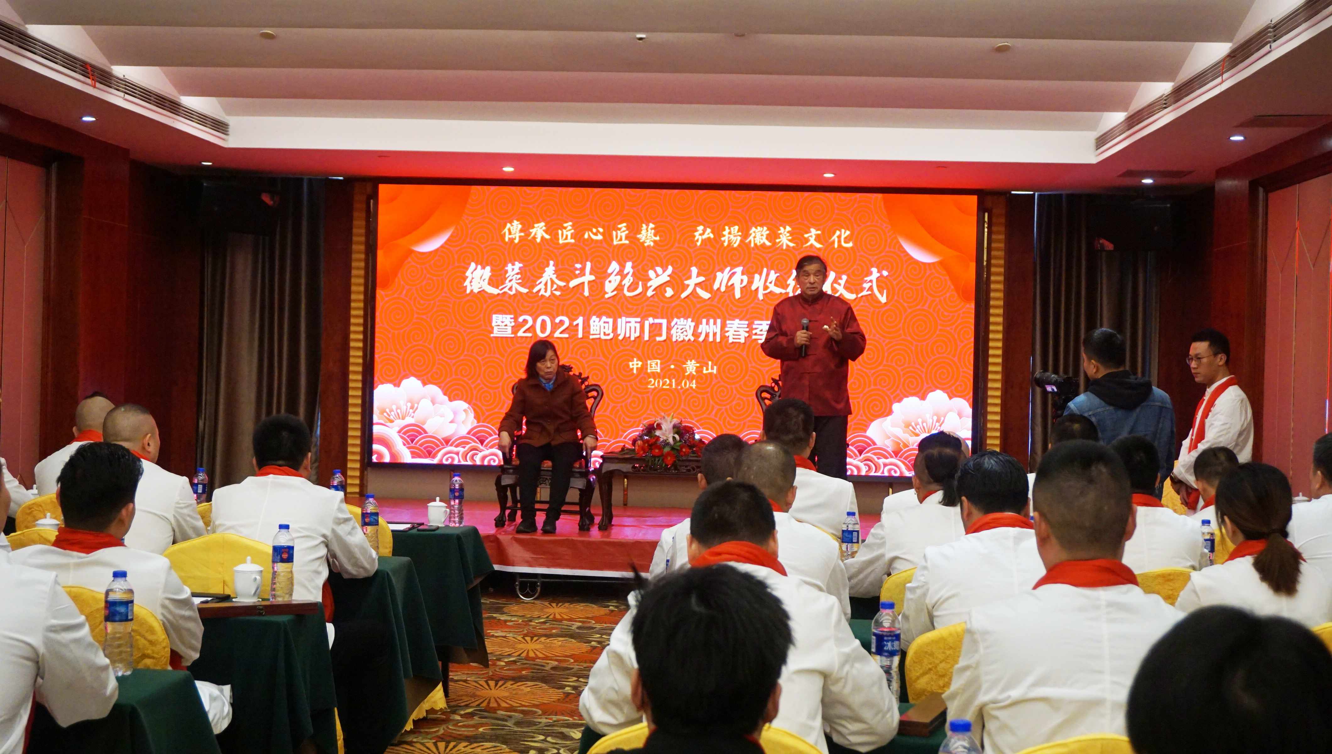 为传承徽厨匠心匠艺,弘扬徽州饮食文化,徽菜泰斗鲍兴大师收徒仪式在安徽黄山太平国际大酒店隆重举行。来自全国不同城市的三十多位弟子参加了收徒仪式,各代徒弟陆续盛装到场。