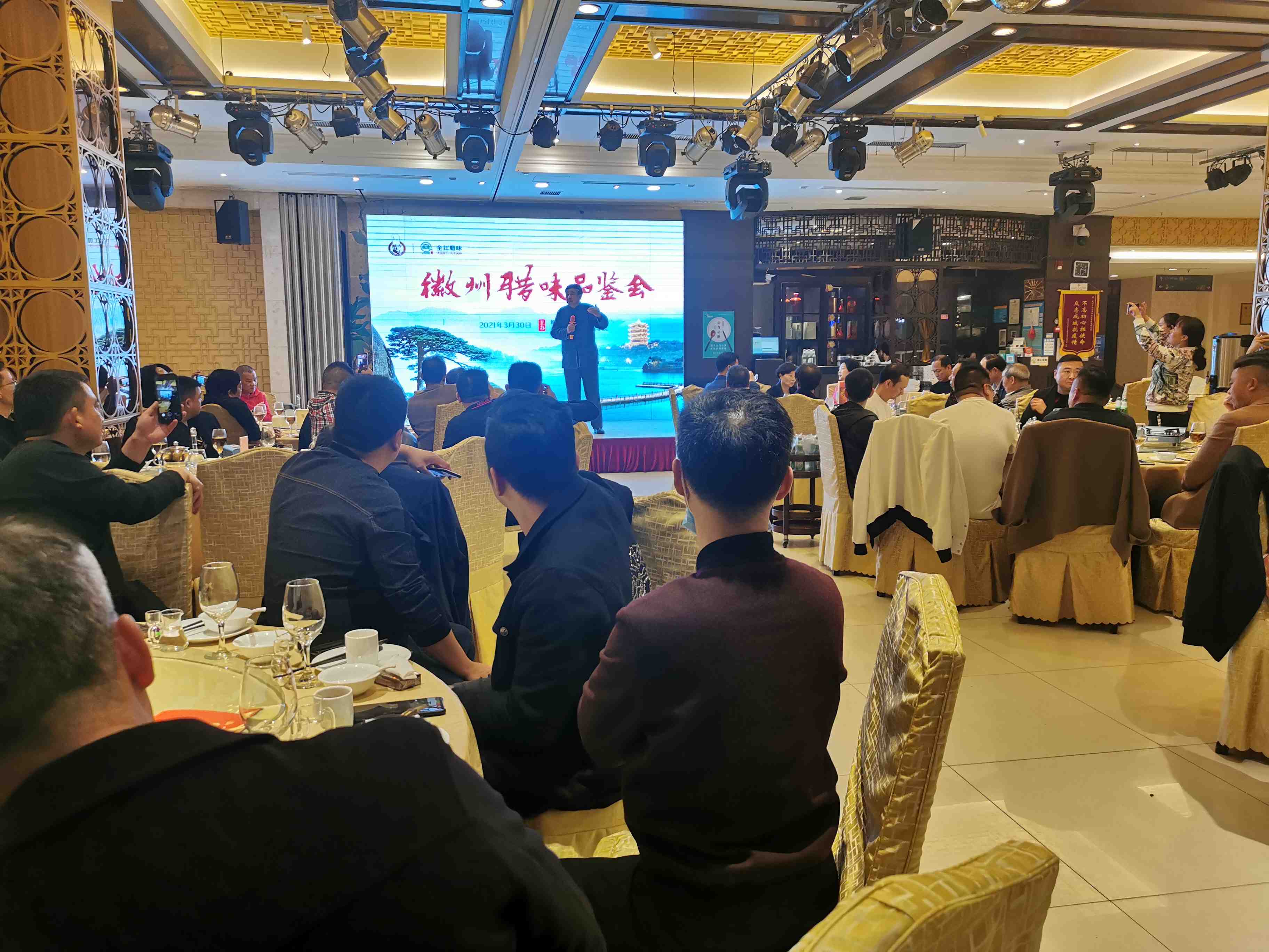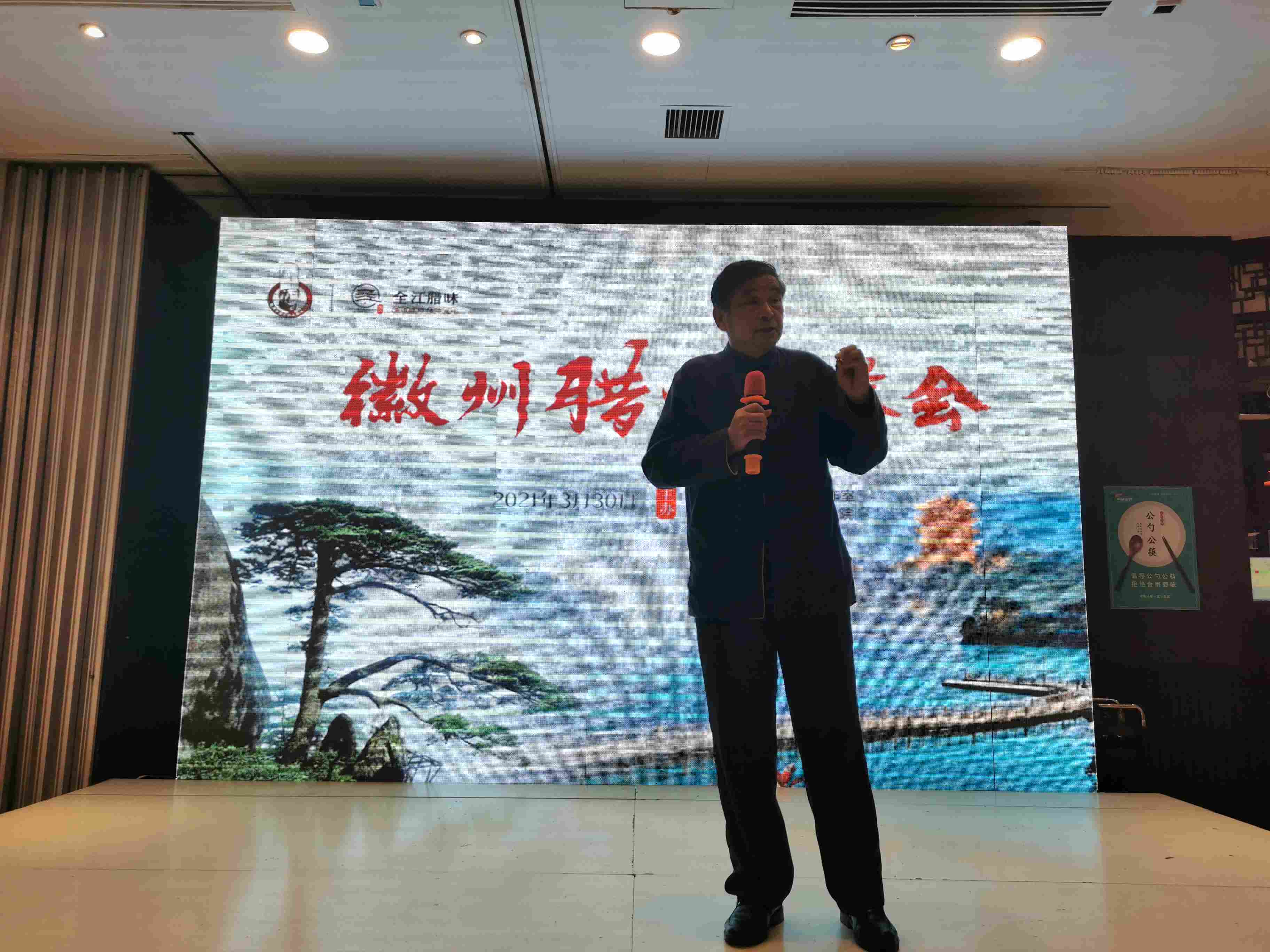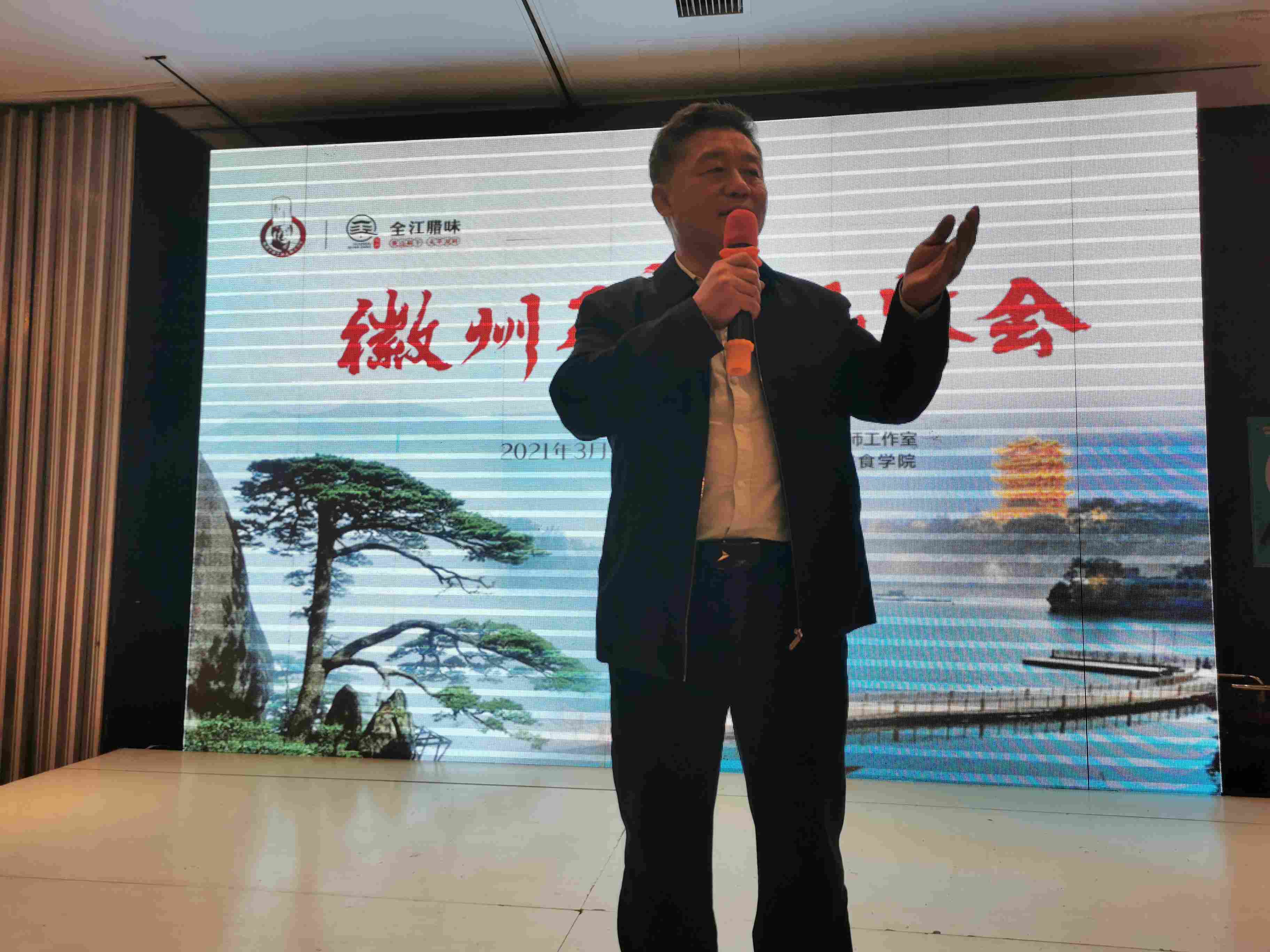 品鉴晚宴由中国饭店协会名厨委常务副主席 鲍兴大师致晚宴欢迎辞,通过对湖北、安徽两地历史文化和饮食文化溯源、徽商文化,深度剖析两地饮食的关联性和食材的共通性。