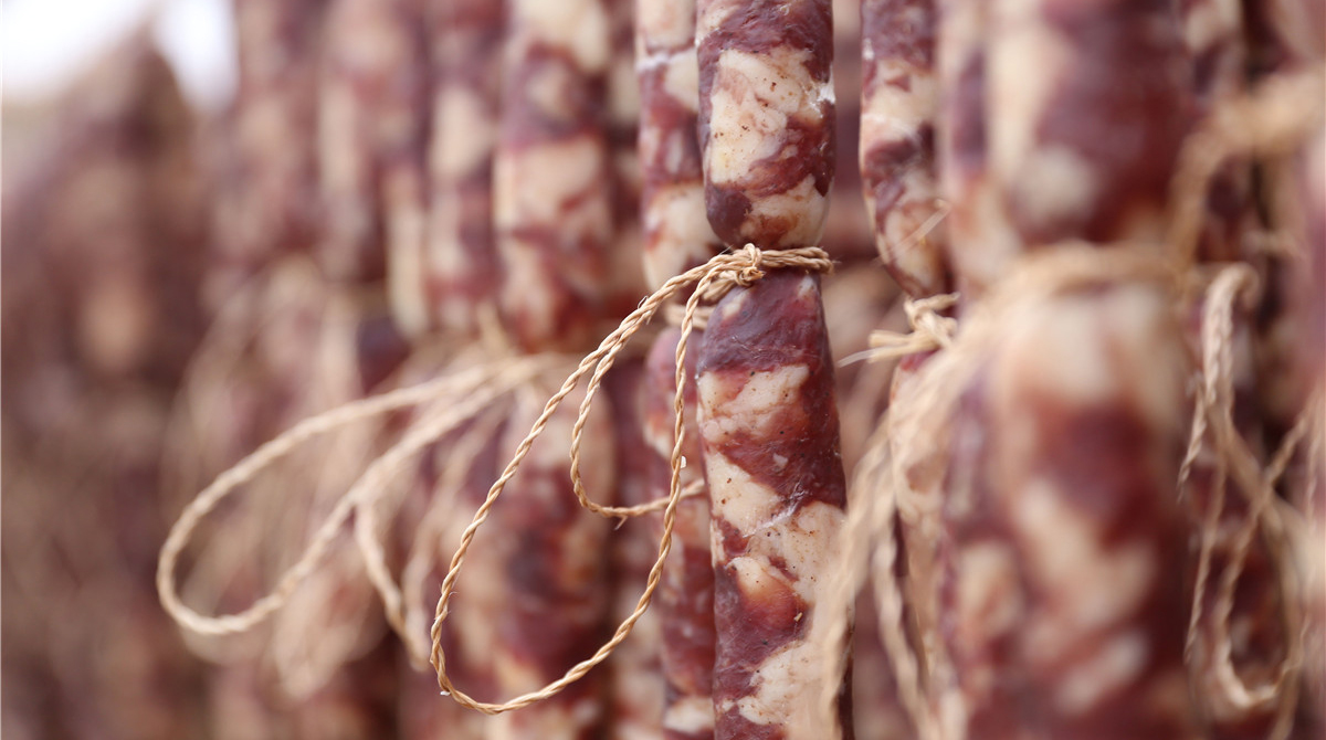 家家户户便会在自家门院前挂晒香肠和腊肉