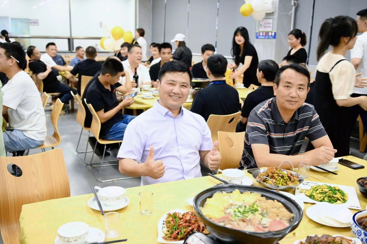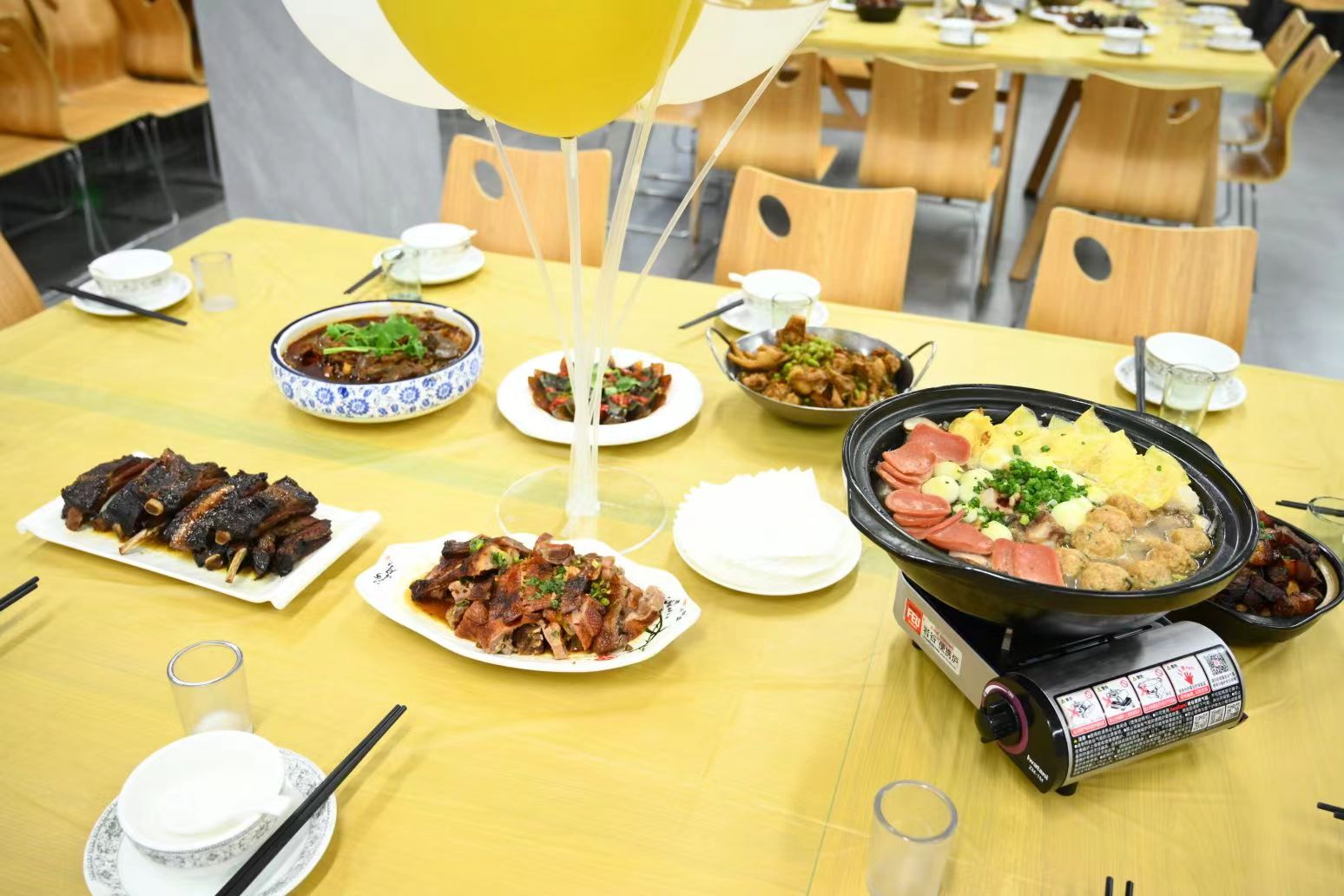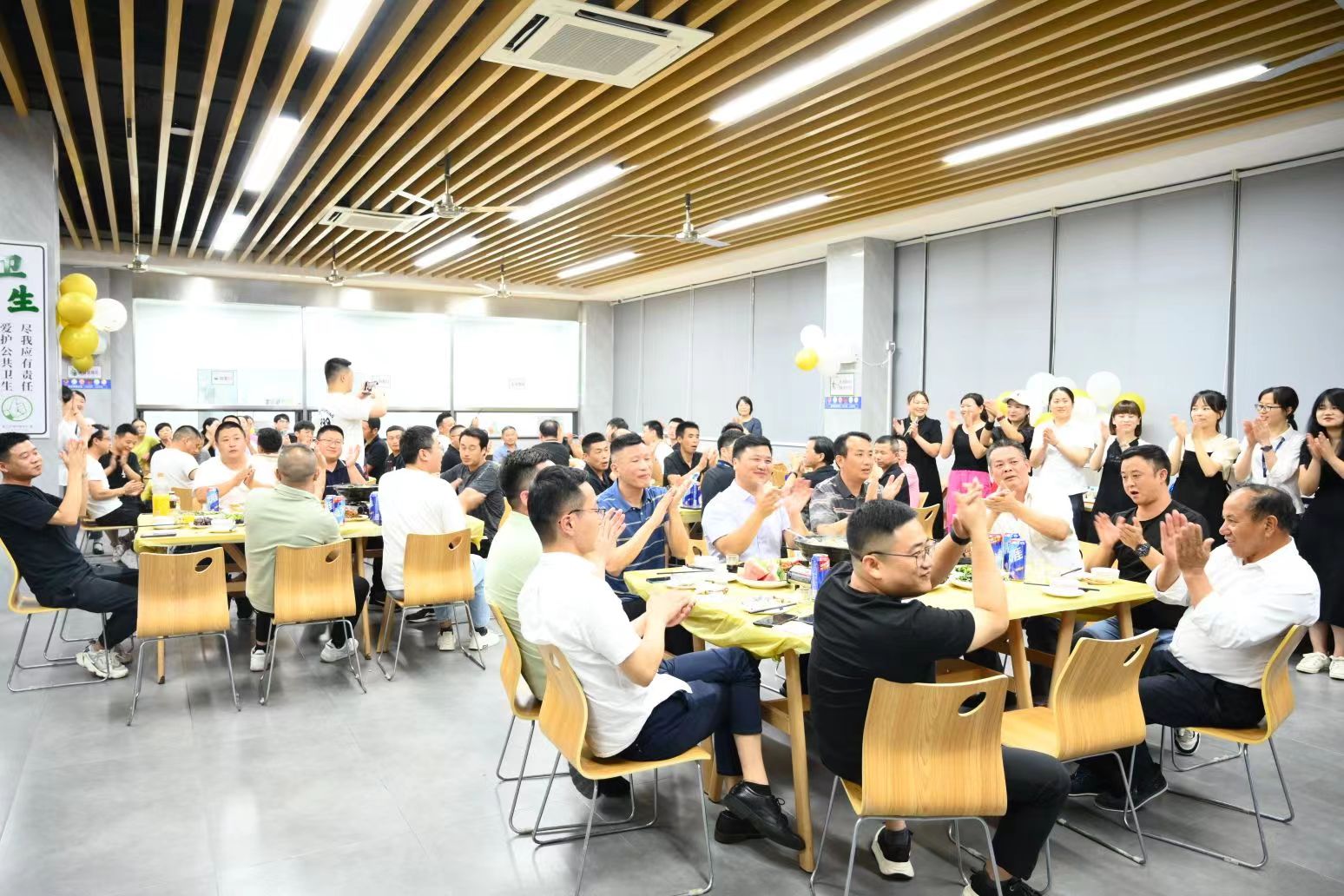 在晚上的活动开始前,行政部门和后勤部所有小伙伴,提前来到一楼食堂布置现场、摆放餐桌,节目彩排,希望给全江的爸爸们一个最大的惊喜!