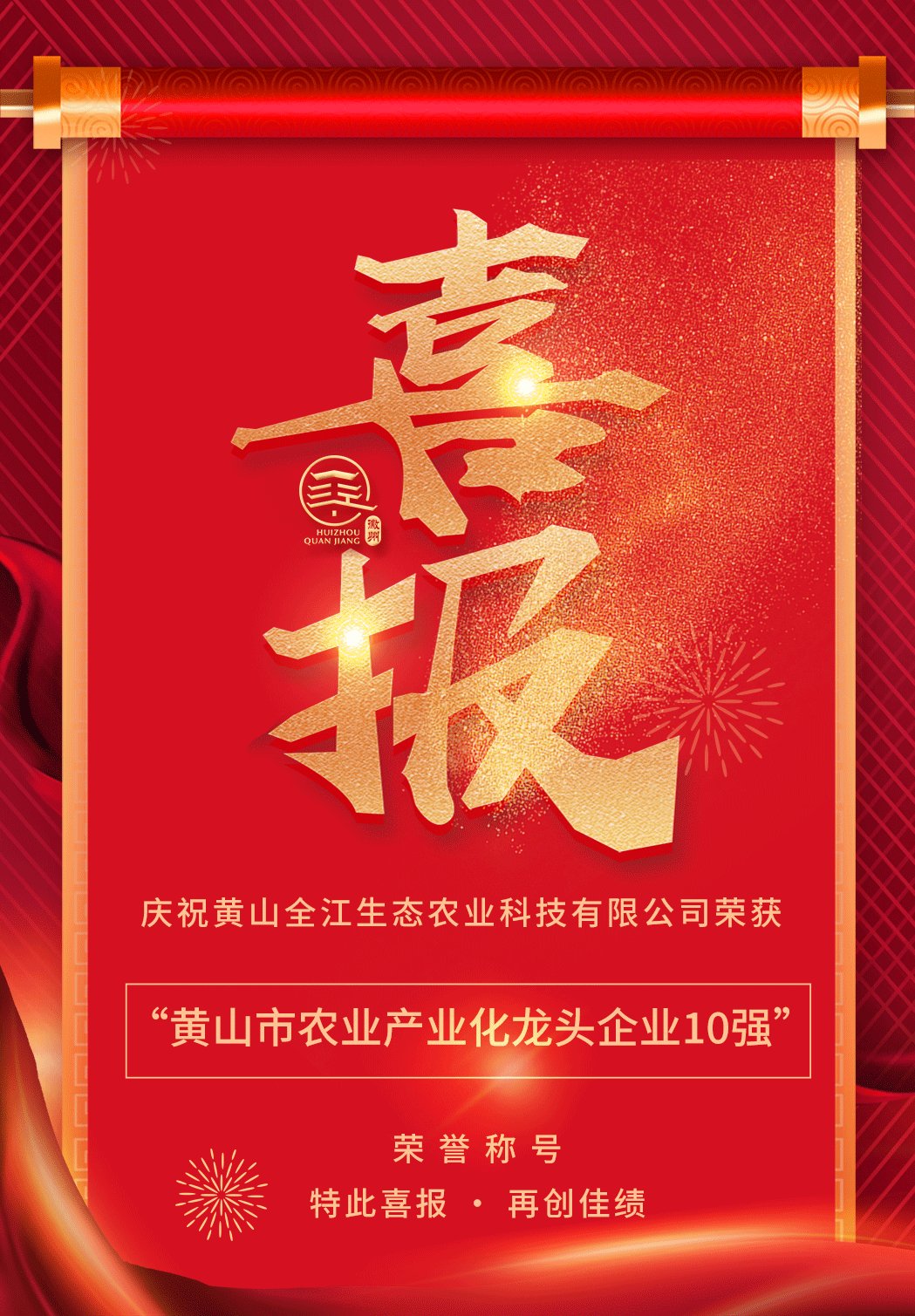 会议通报表扬了2022年度全市优秀企业,黄山全江生态农业科技有限公司荣获“黄山市农业产业化龙头企业10强”荣誉称号。董事长江礼明作为优秀企业代表出席会议并上台接受授牌。